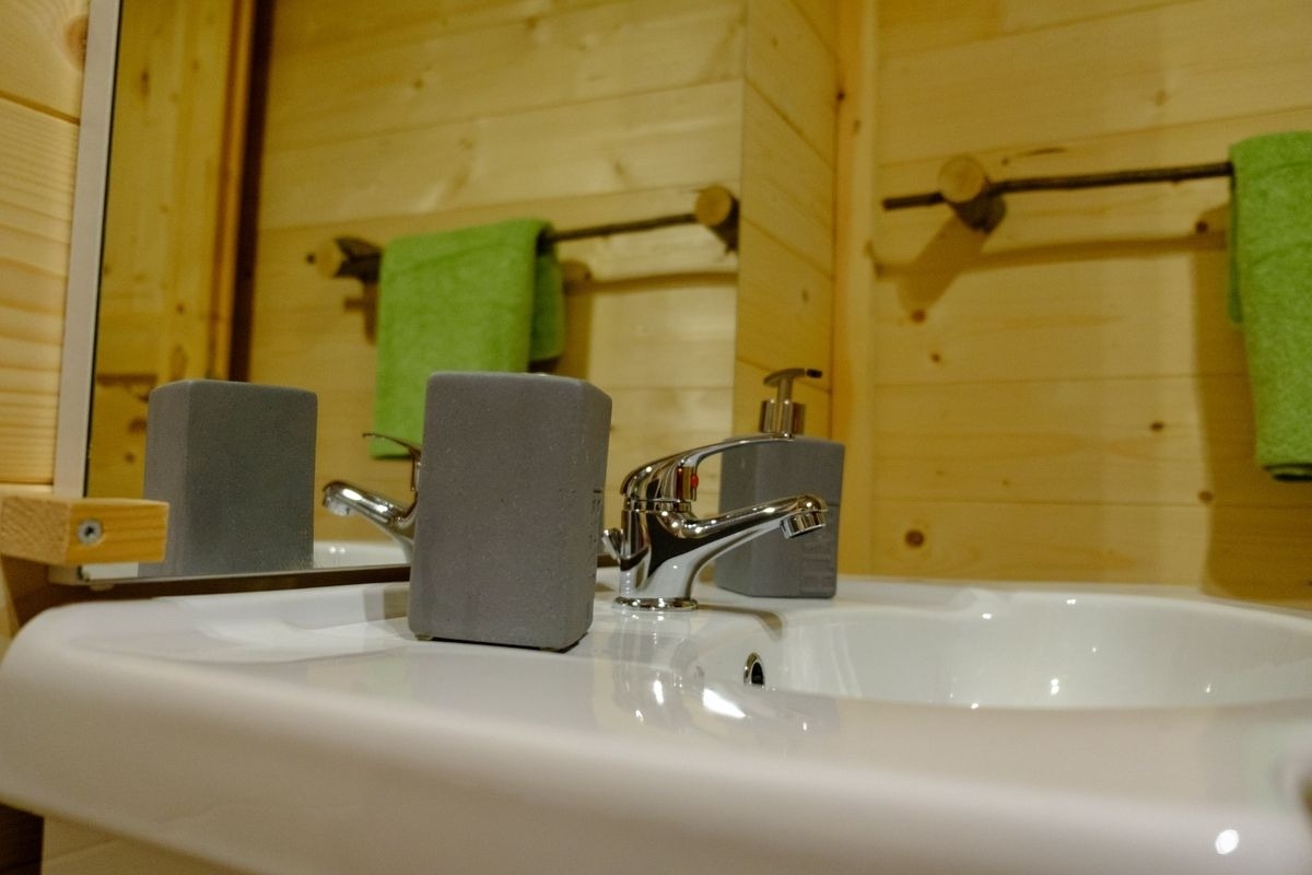 Die kompakte, durchdachte Raumaufteilung macht die Hütte ideal für Paare, kleine Familien oder Naturliebhaber.