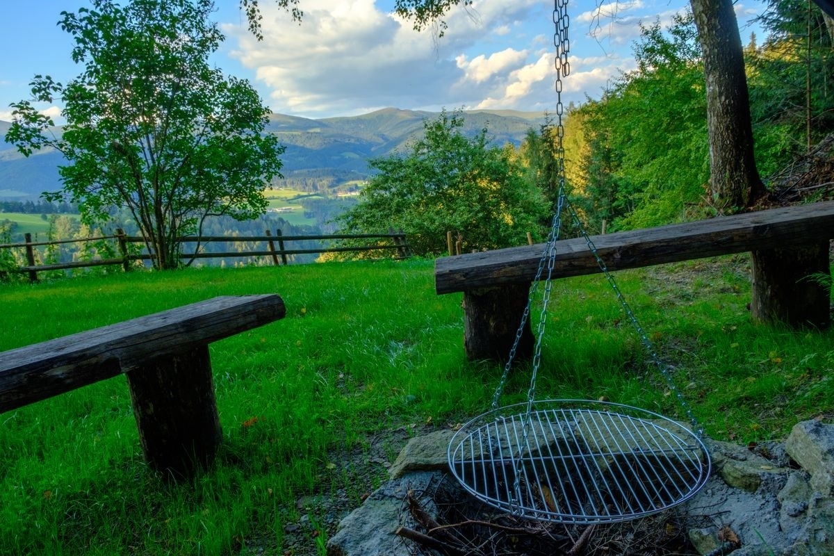 Direkt ab der Hütte starten zahlreiche Wanderwege und Mountainbike-Strecken – ideal für Aktivurlauber und Naturliebhaber. Gleichzeitig lädt die große Wiese rund um die Hütte zum Entspannen, Spielen oder Sonnen ein. In unmittelbarer Nähe befindet sich der Bauernhof der Eigentümer, die zusätzlich eine Straußenzucht betreiben. Hier können Sie regionale Produkte direkt vor Ort erwerben.