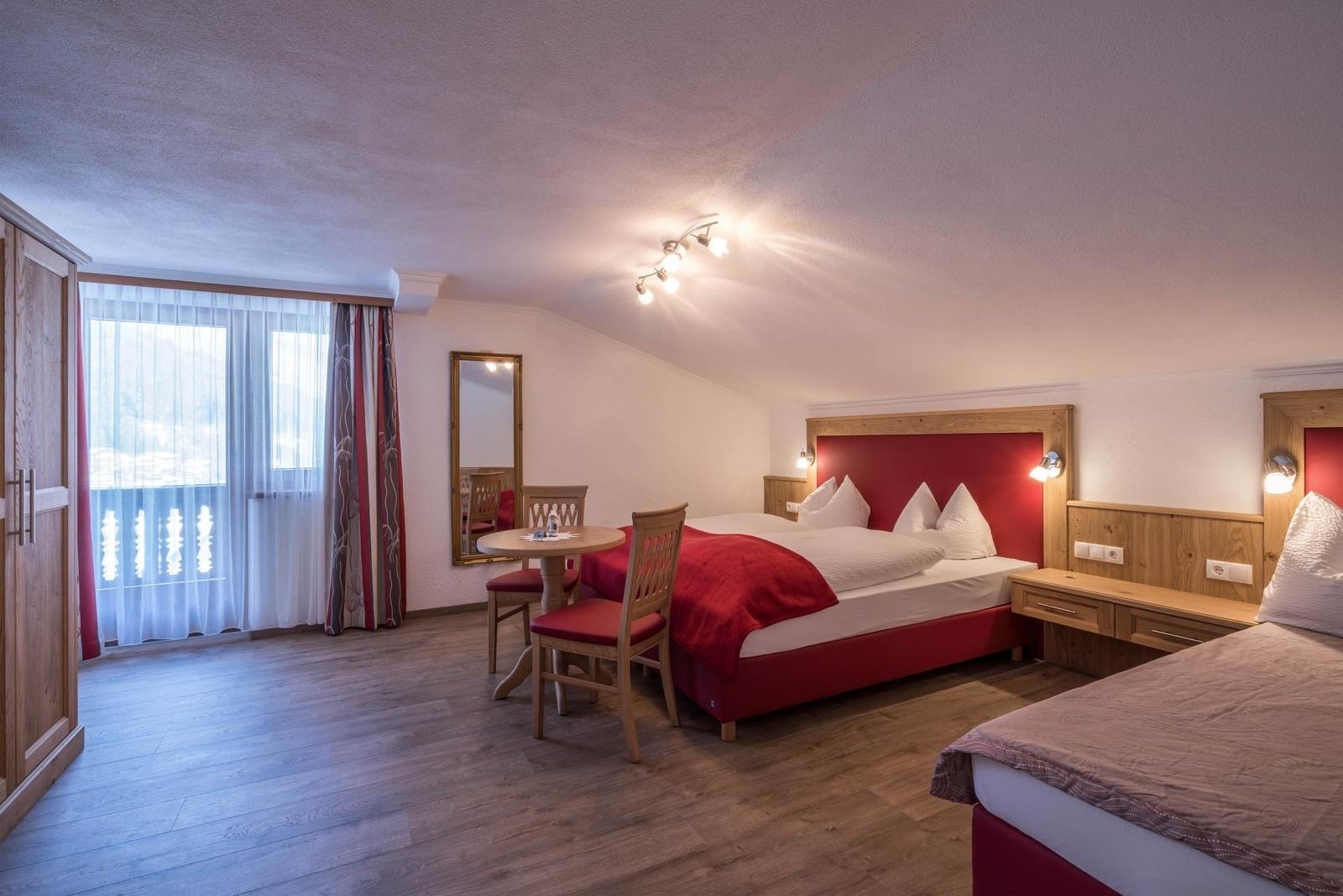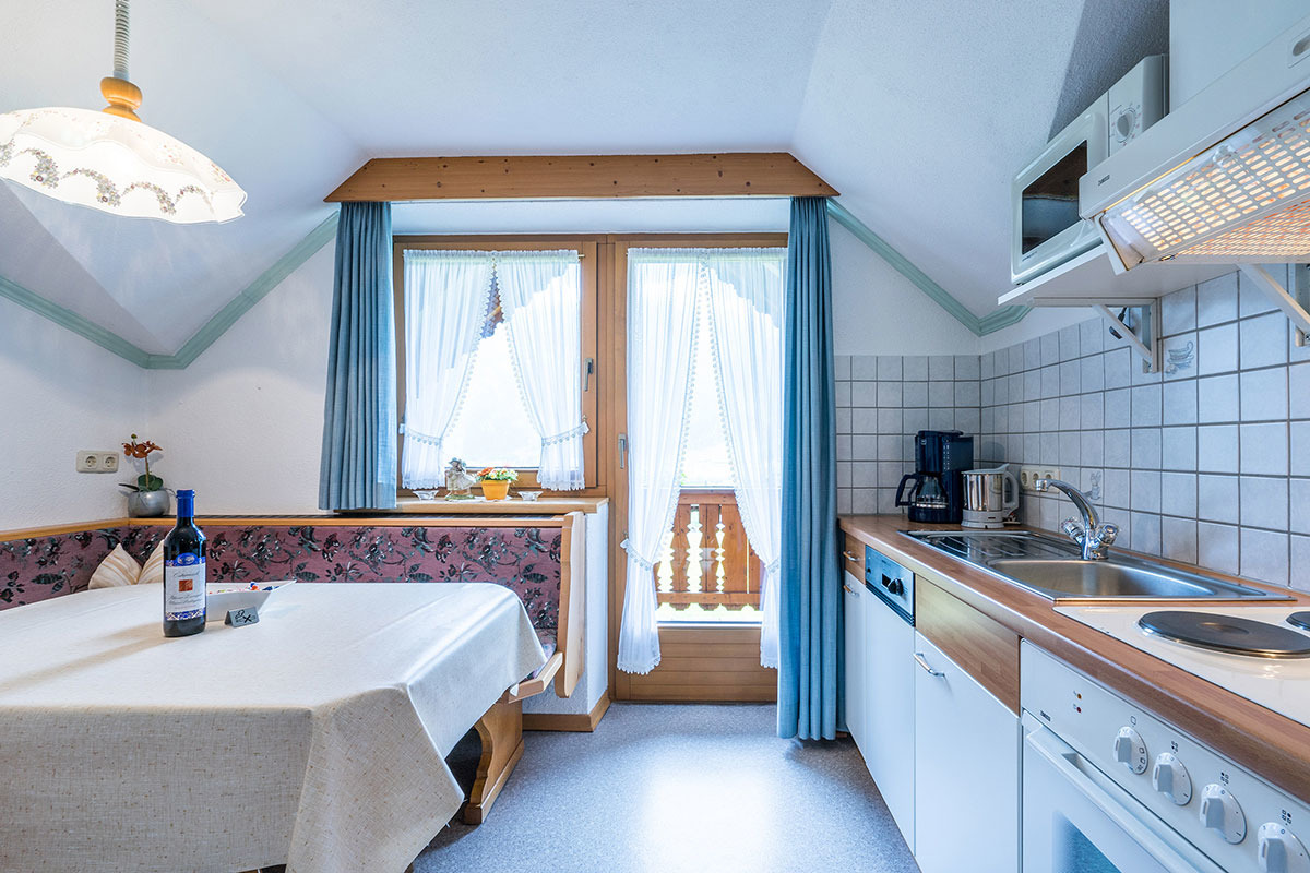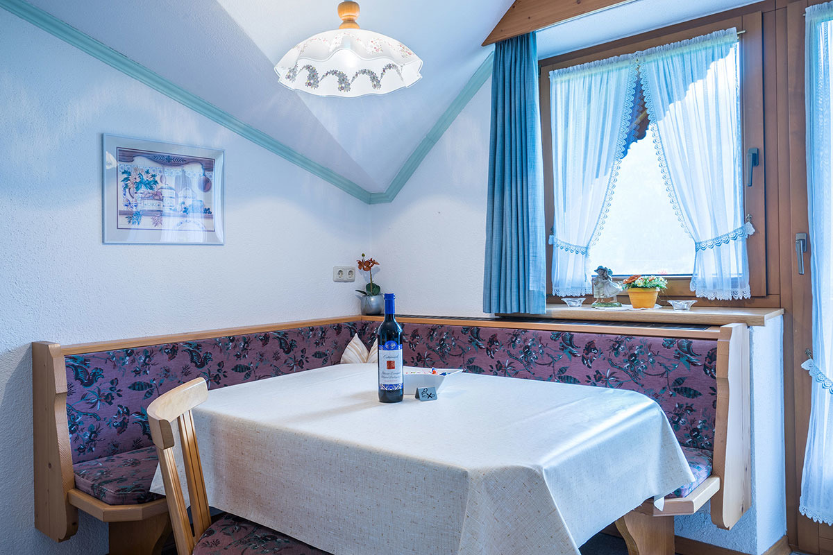 Sie wohnen in einem in Tiroler Stil eingerichteten Appartement mit einem großen Schlafzimmer für 3 Personen. Bei Bedarf kann ein Zustellbett für die 4te Person eingestellt werden. Des Weiteren verfügt die Ferienwohnung über eine abgeschlossene geräumige Küche.