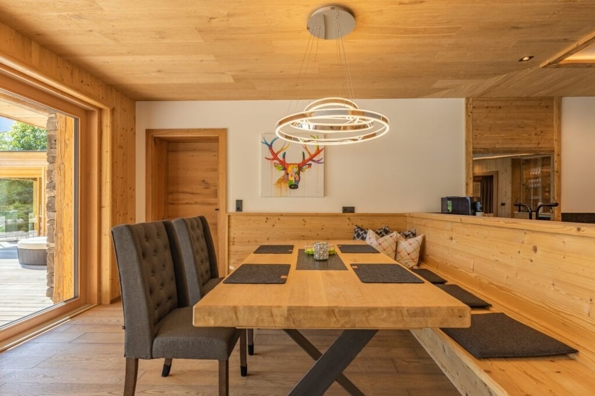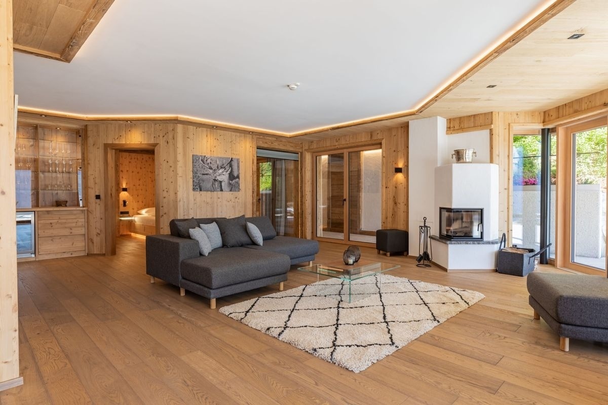 Exklusives Luxus-Chalet mit 150 m² Wohnfläche, hochwertige Architektur aus Holz, Stein & Glas, zwei Schlafzimmer und zwei luxuriöse Badezimmer, privater Außenwhirlpool, privates Spa mit Sauna & Infrarotkabine, zusätzlicher Naturteich, offener Holzkamin, Designküche mit Falcon-Induktionsherd & Dampfgarer, umfangreiche Inklusivleistungen inkl. Begrüßungsjause, Kaffeevollautomat & Weinkühlschrank, barrierefrei mit Lift & Tiefgarage, beheizter Skiraum, hundefreundlich, ganzjährig mit PKW erreichbar – ideal für anspruchsvolle Genießer, Paare und Ruhesuchende auf höchstem Niveau.