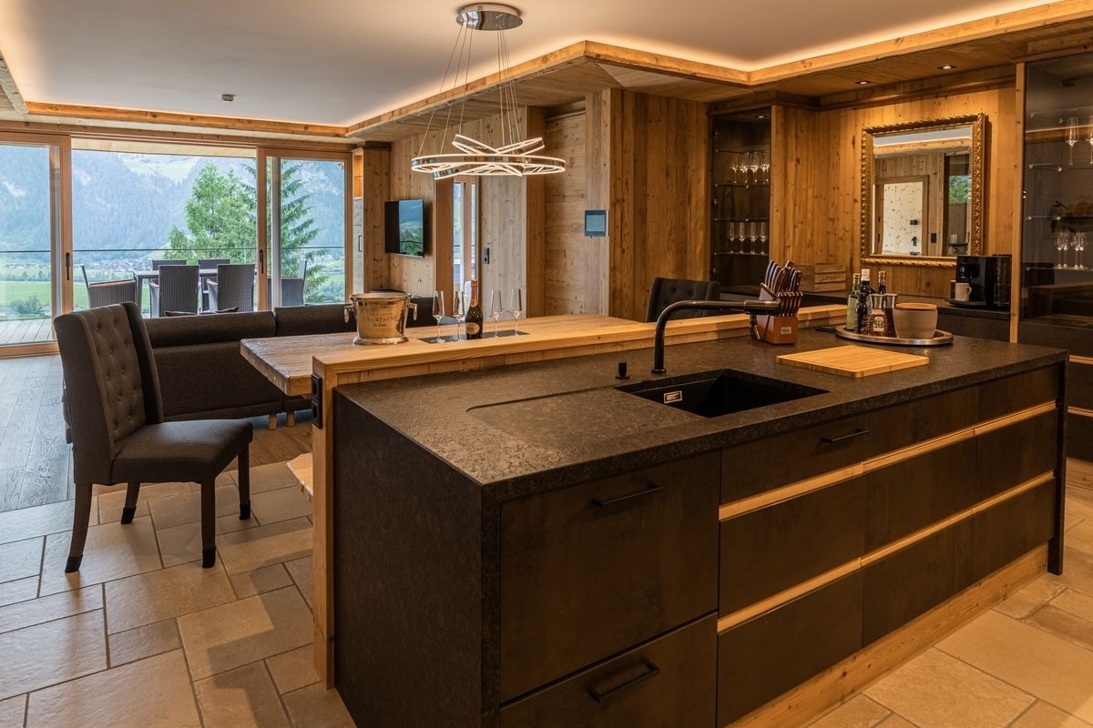 Die hochwertig ausgestattete Designküche mit Falcon-Induktionsherd, Dampfgarer sowie edlem Fondue- und Raclette-Geschirr lädt zu genussvollen Abenden ein. Absolute Entspannung garantieren der private Außenwhirlpool und die eigene Sauna. Barrierefreier Zugang, Lift, Tiefgaragenplatz, beheizter Skiraum, WLAN und auf Wunsch ein Weber-Gasgrill runden dieses exklusive Chalet ab – perfekt für anspruchsvolle Genießer im Zillertal.