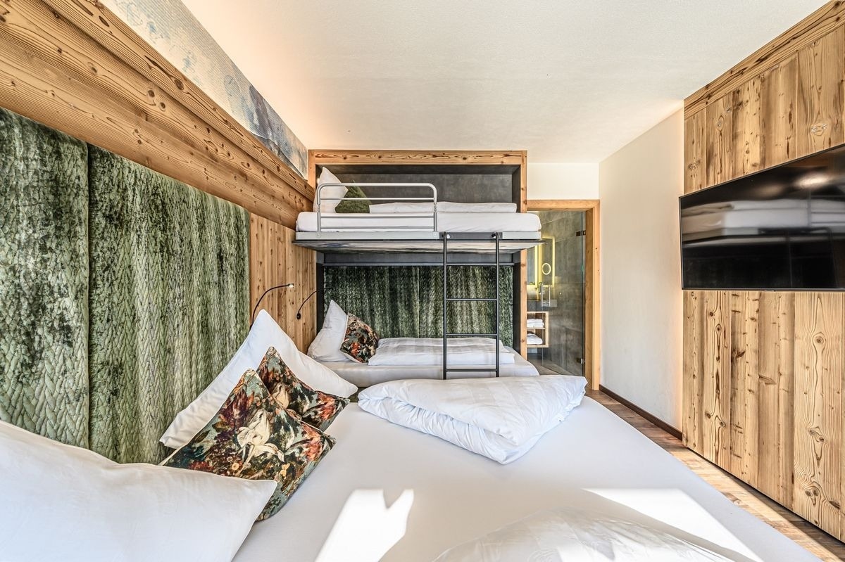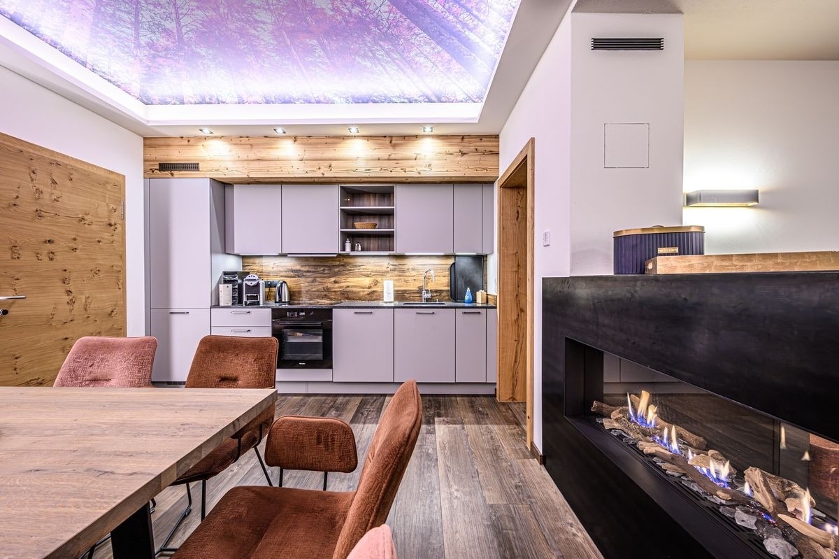 Zwei großzügige Familienzimmer (je 4 Personen) mit modernen Bädern – eines davon mit freistehender Badewanne – sowie eine zusätzliche Schlafcouch im Wohnzimmer sorgen für erholsamen Schlafkomfort. Der lichtdurchflutete Wohn-, Ess- und Kochbereich begeistert mit Kamin, großer Couch, Flat Screen TV und einer voll ausgestatteten Küche mit Nespresso-Maschine, Weinklimaschrank und Teebar.