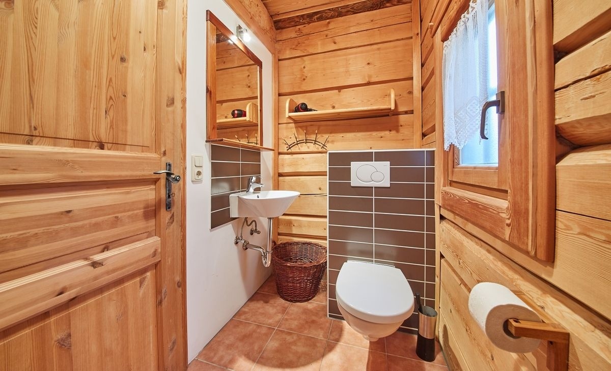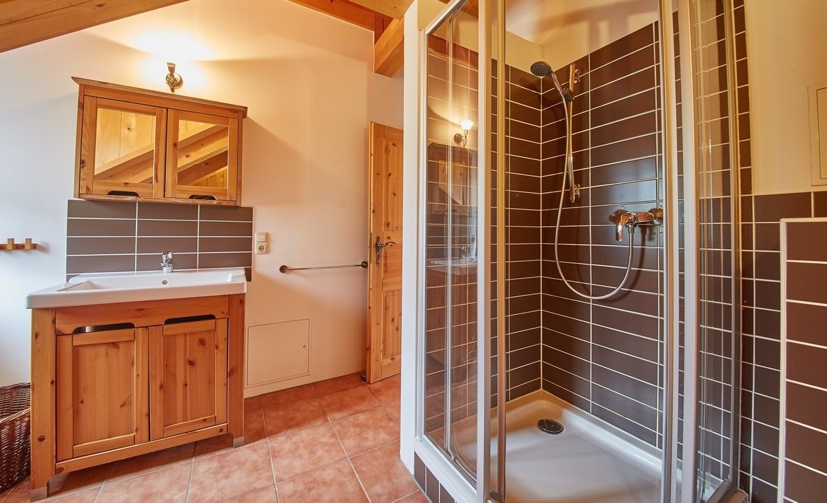 Gemeinschaftssauna: Die Sauna befindet sich im Untergeschoss der Hütte III und ist über eine Außentreppe von allen drei Hütten zu erreichen.