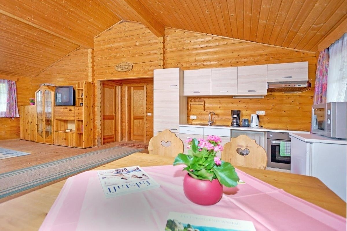 Der helle Wohnraum mit Esstisch, eine funktionale Küche und ein modernes Badezimmer sorgen für angenehmen Wohnkomfort. Besonders einladend ist die Holzterrasse mit Gartenmöbeln und angrenzender Liegewiese – perfekt zum Entspannen mit Blick auf die Donau. Ein ideales Urlaubszuhause für erholsame Tage in naturnaher Lage.