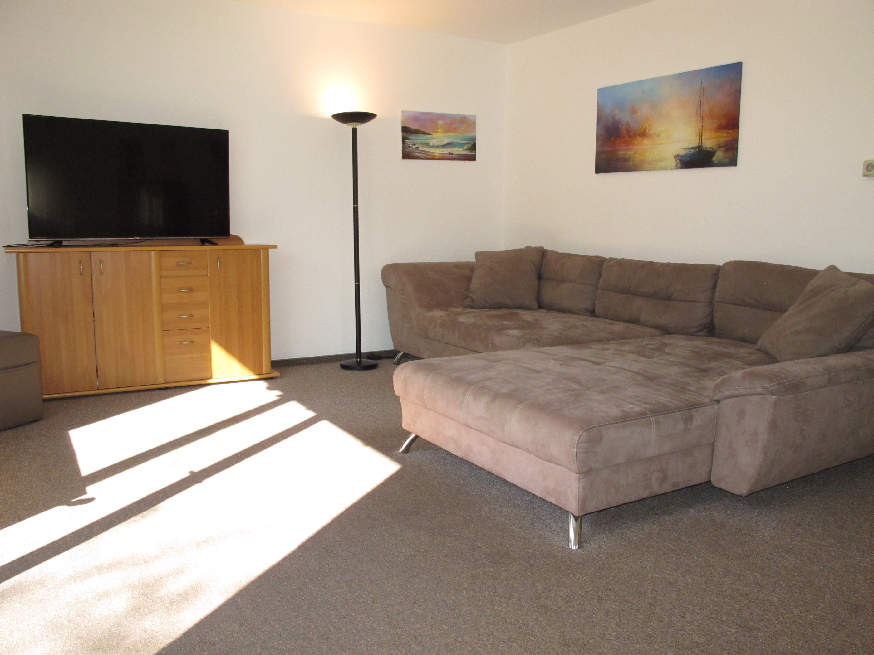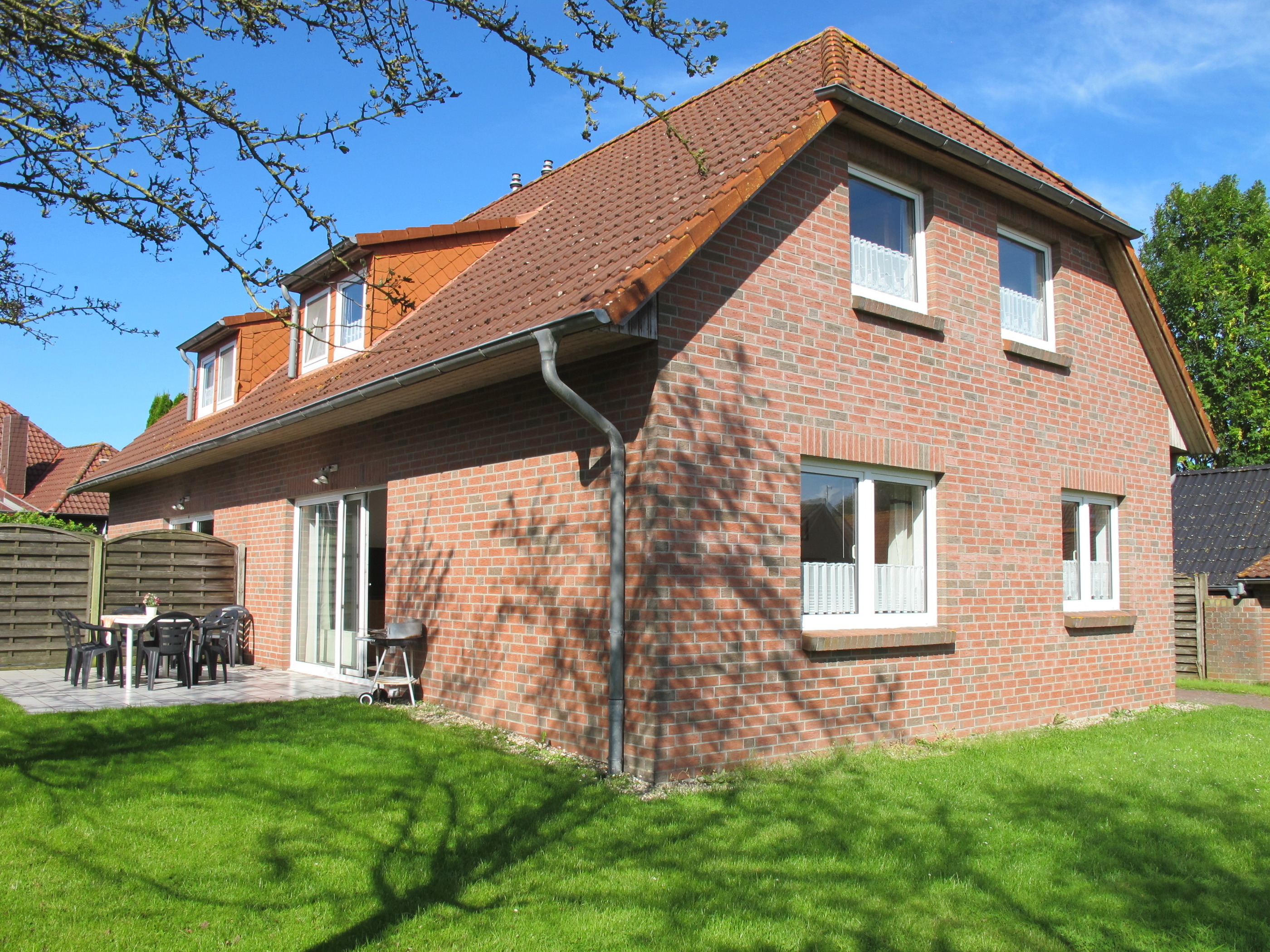 Gute Einrichtung und Ausstattung, Teppichböden in den Wohn- und Schlafbereichen. Gas-Zentralheizung. Das Doppelhaus wird zur Saison 2024 in Teilbereichen renoviert, u.a. Austausch der Küche.