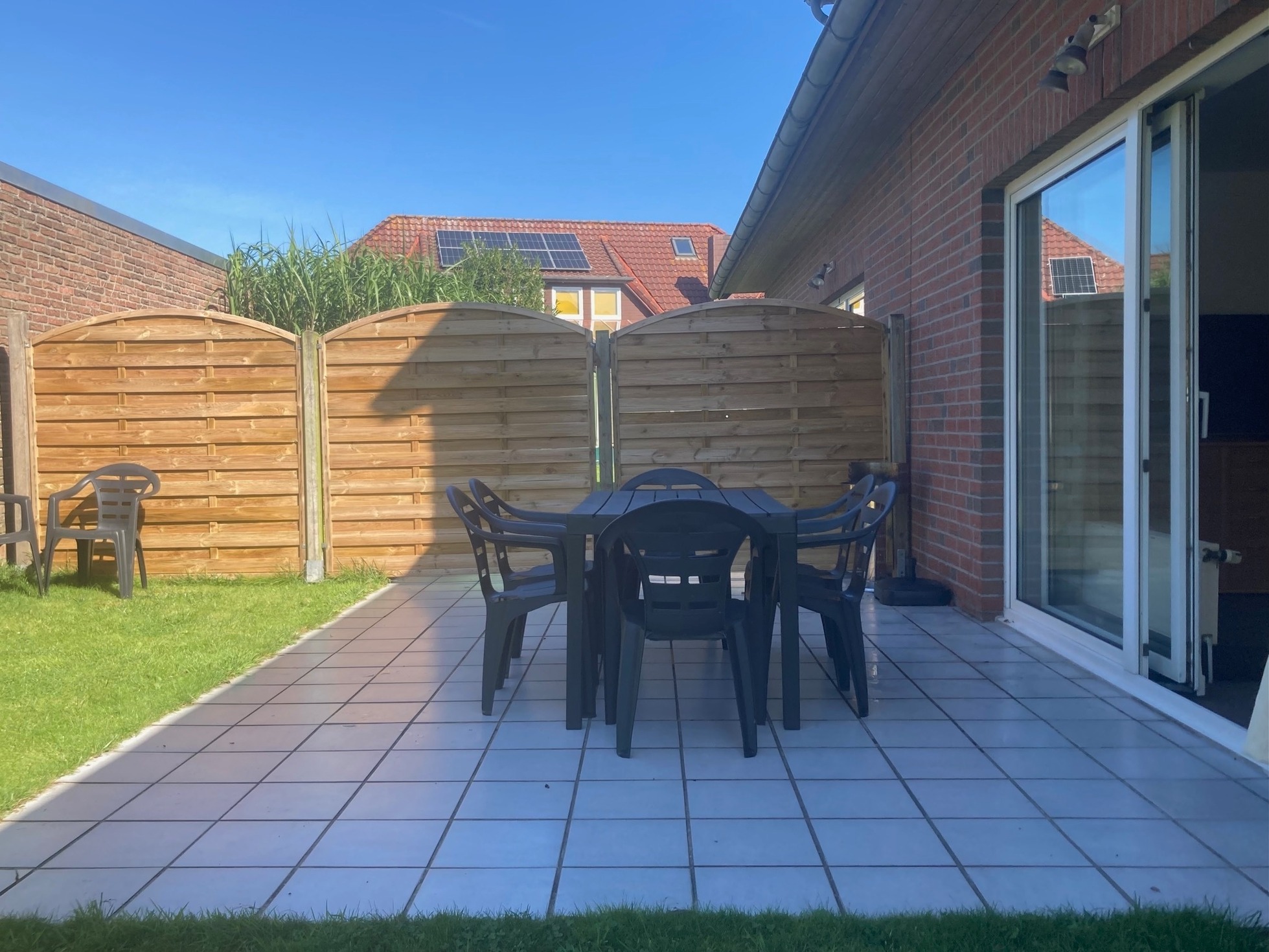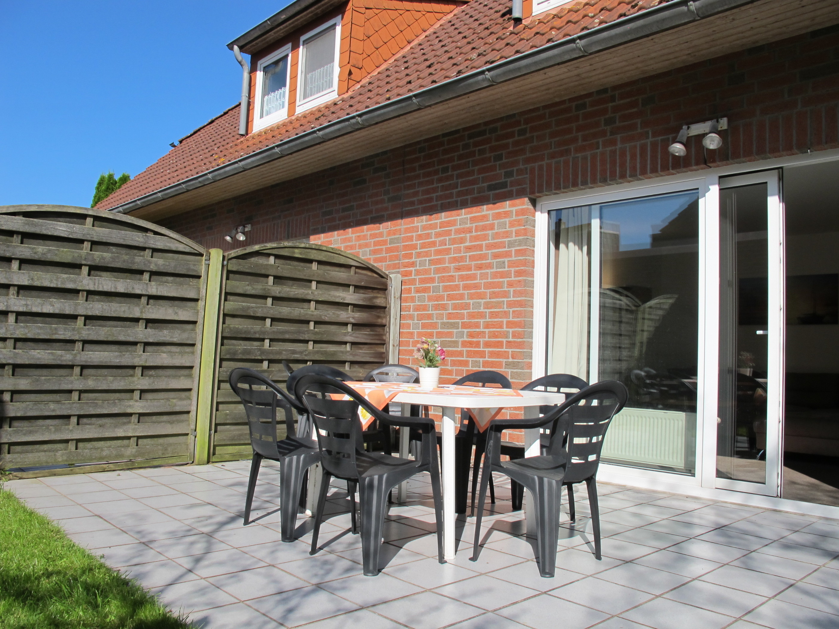 Das FERIENHAUS SONNE (HORS100) mit einer Wohnfläche von 112 m² über 2 Etagen, steht am Ende einer Stichstraße, innerhalb eines gewachsenen Wohngebiets, und ist umgeben von einem ca. 400 m² großen, offenen Rasengrundstück mit Randbepflanzung (Hecke). Terrasse mit Mobiliar, Sonnenschirm, Grill, 2 Sonnenliegen sowie Sichtschutz zur angrenzenden Doppelhaushälfte. Ferienwohnung HORS130 nur ca. 500 entfernt.