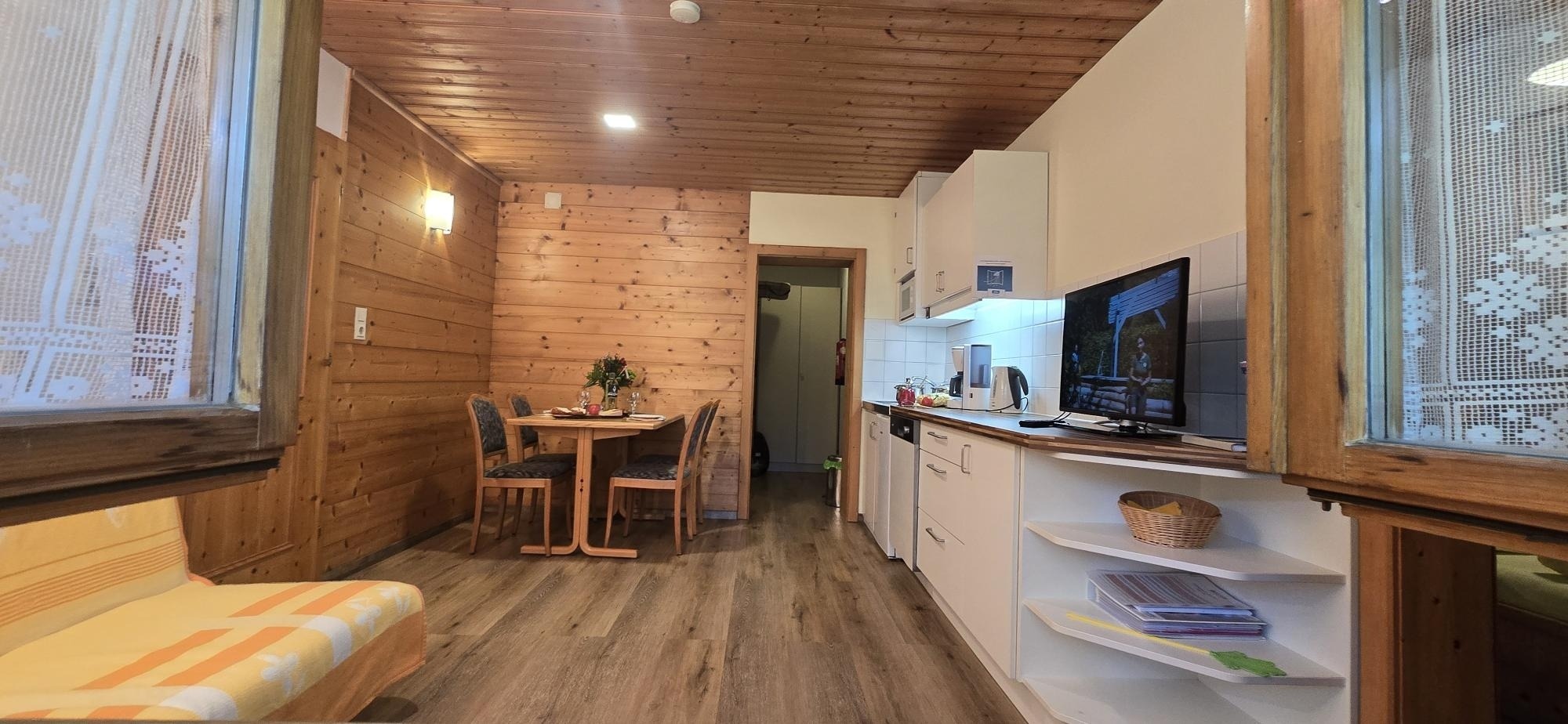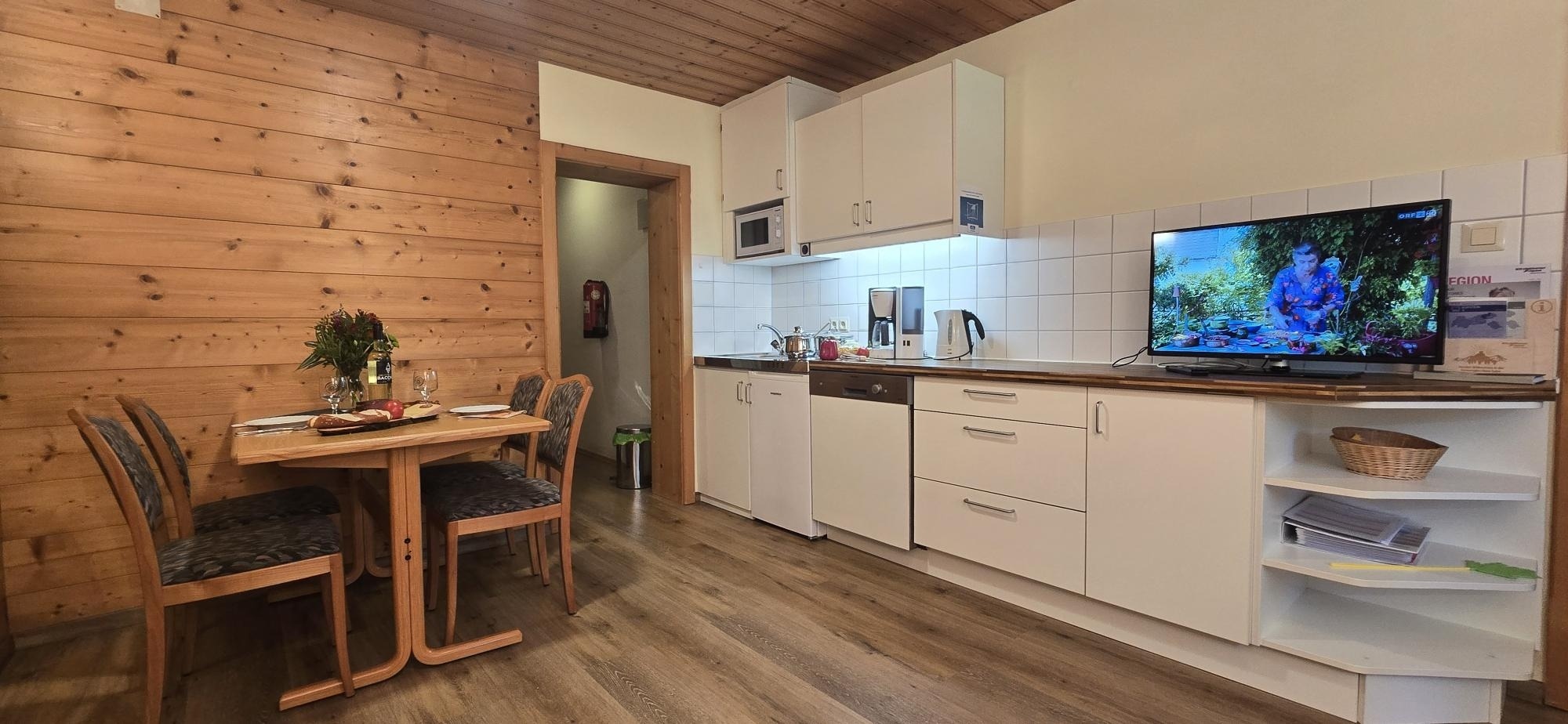 Gemütliche 2-Zimmer-Wohnung mit 45m² im Erdgeschoss für maximal 3 Personen. Ein Schlafzimmer mit Doppelbett, Wohn-/Schlafraum mit Schlafcouch, Essplatz für 3 Personen und Kochnische. Ausgestattet mit Geschirrspüler, Kühlschrank, Kaffeemaschine, Wasserkocher, Toaster und Mikrowelle. Ellmau, Going, Scheffau und Söll