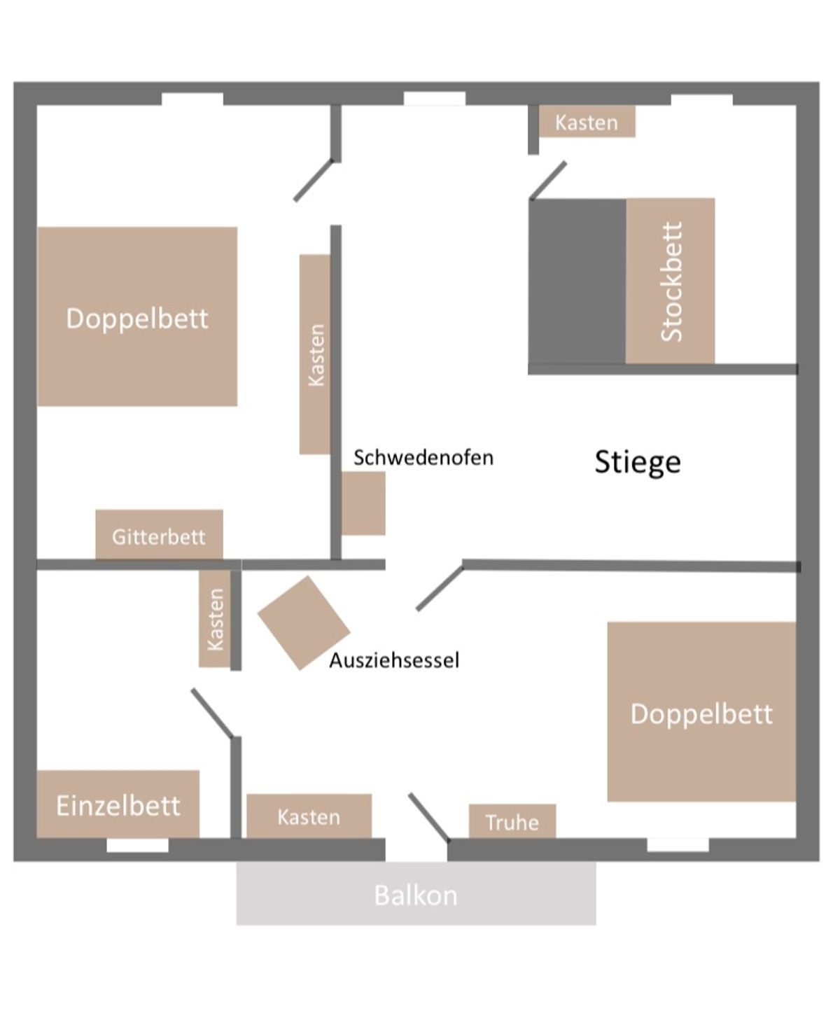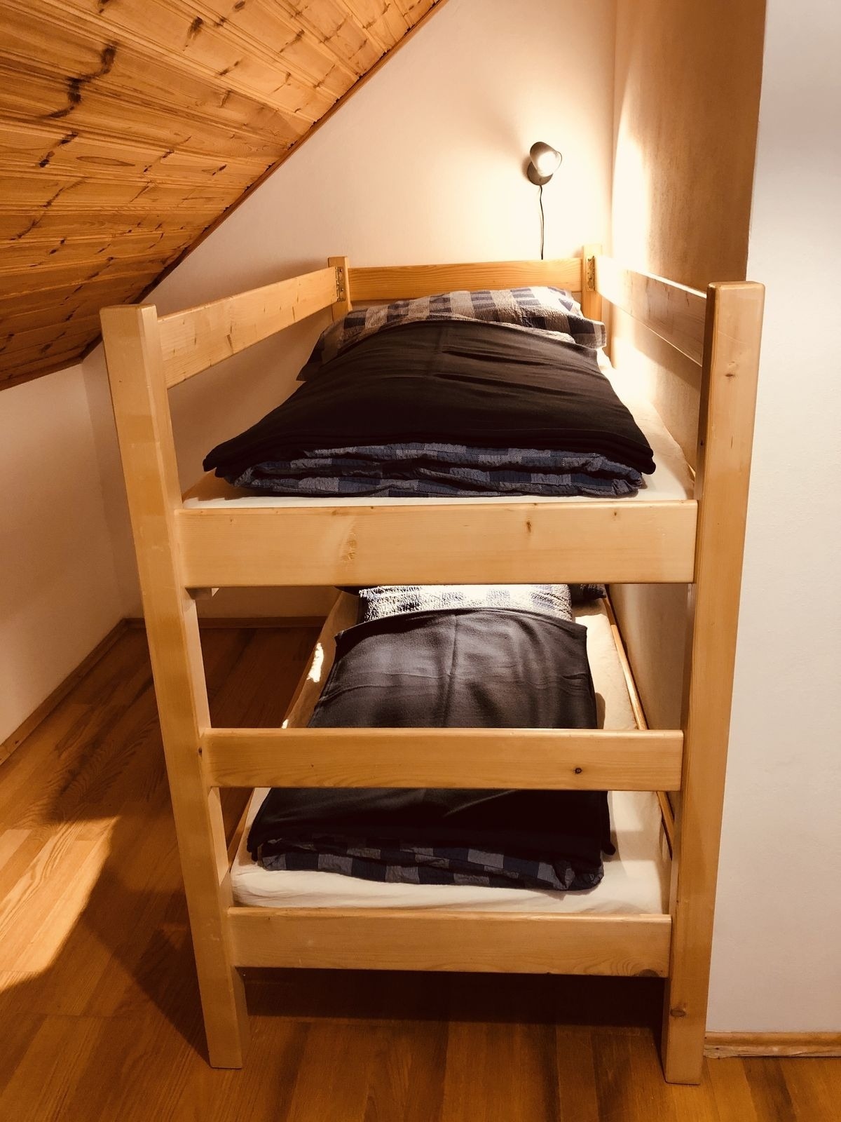 Diese gemütliche Almhütte in Pichl bietet auf 100 m² Platz für bis zu 14 Personen und vereint traditionellen Hüttencharme mit komfortabler Ausstattung. Ein Doppelzimmer, ein Vierbettzimmer und ein großes Achtbettzimmer im Obergeschoss – erreichbar über das Vierbettzimmer – bieten reichlich Platz für Familien und Gruppen.