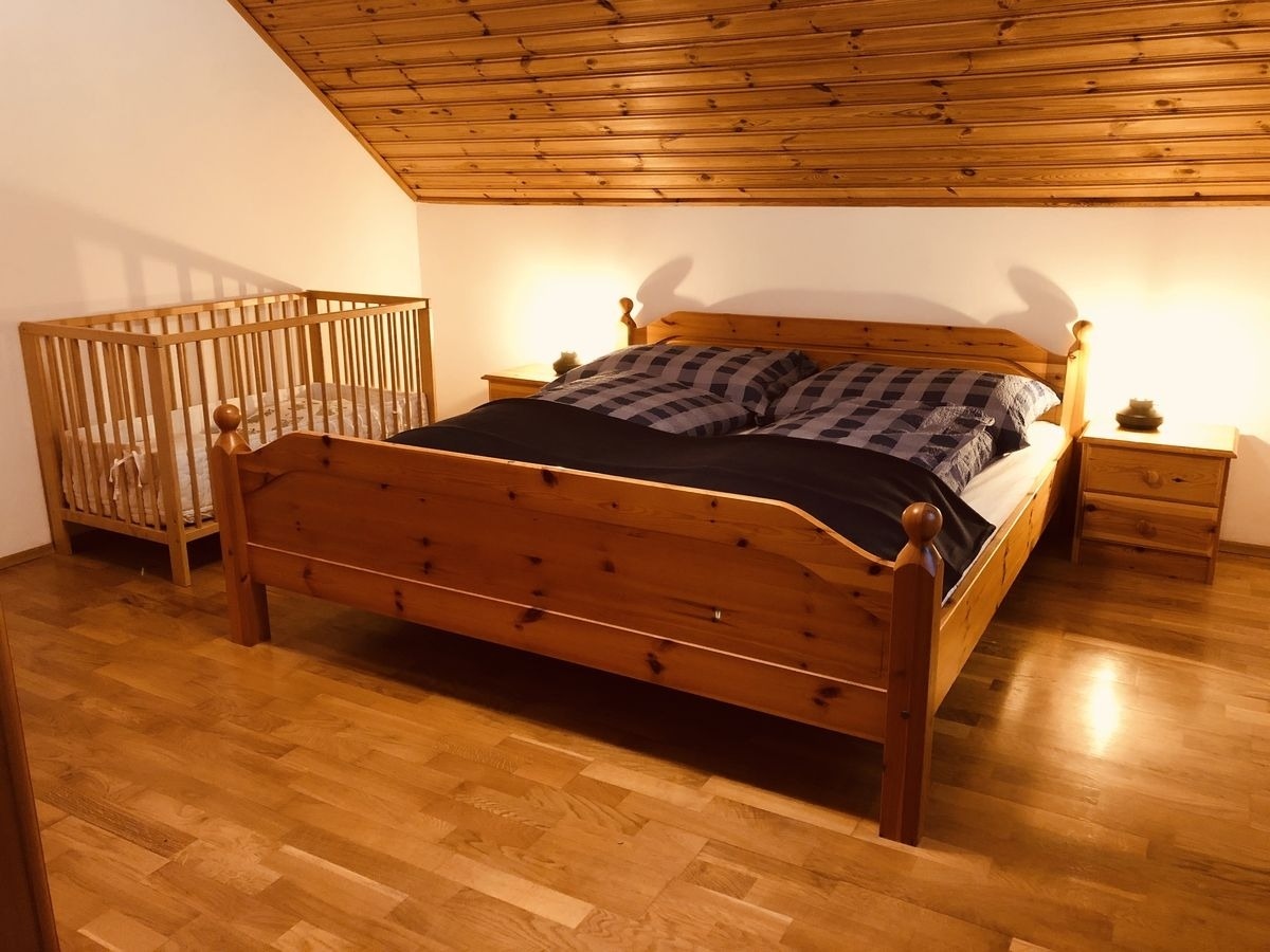 1 Schlafzimmer mit Doppelbett & Kinderbett