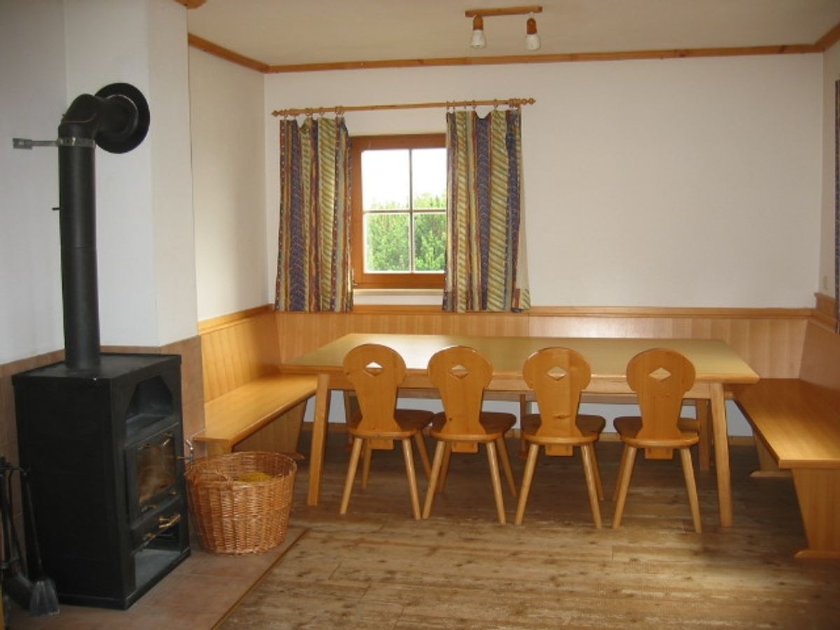 Gemütliche Wohnstube mit Essecke, Schwedenofen & kleiner Sitzgarnitur