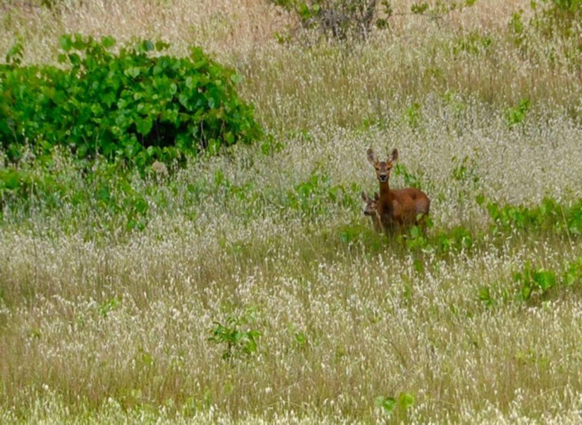 Schlafzimmer (14 m²): Doppelbett (Breite: 1.6m, Länge: 1.8m), WiFi Internet, Klimaanlage, Fliegengitter, zwei Sessel, Ausgang auf den Patio.