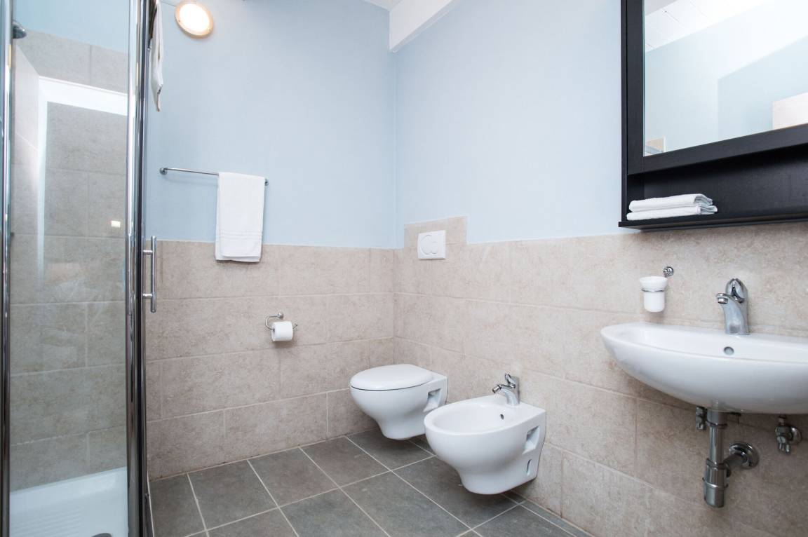 Schlafzimmer mit Bad (21 m²): Doppelbett, WiFi Internet, Klimaanlage, behindertengerecht, Waschbecken, WC, Bidet, Dusche, Fön.