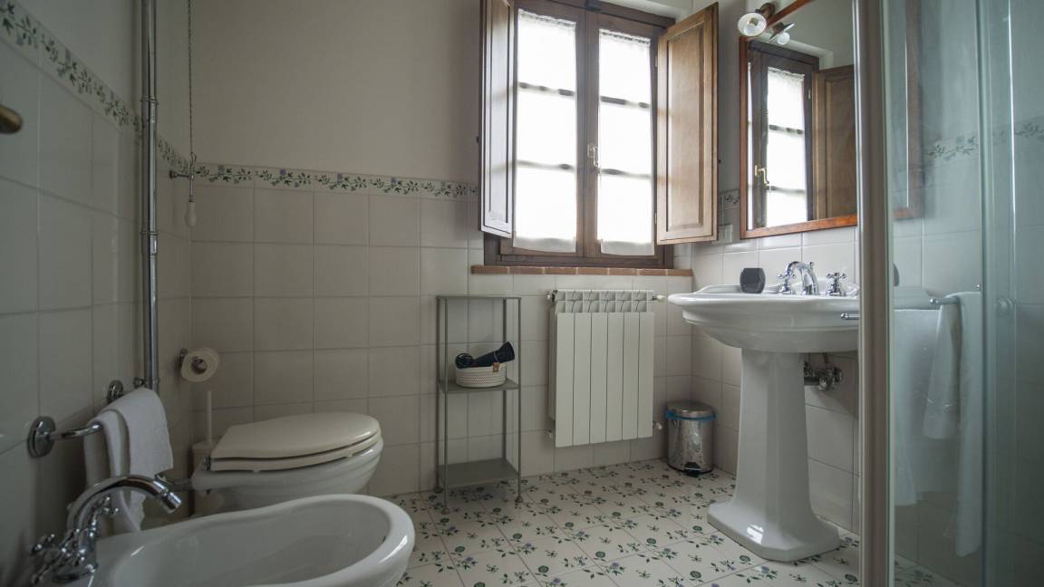 Für Mahlzeiten im Freien ausgestatteter Außenbereich mit Tisch, Stühlen und Grill, der mit den Apartments Cipressi und Camino geteilt wird.