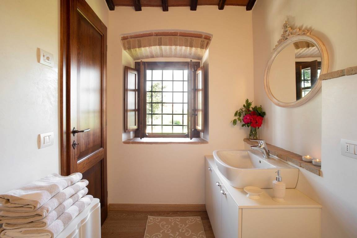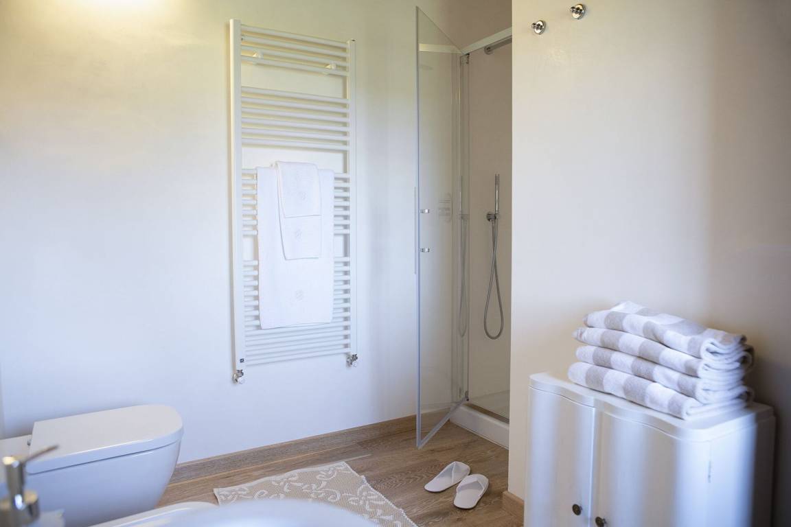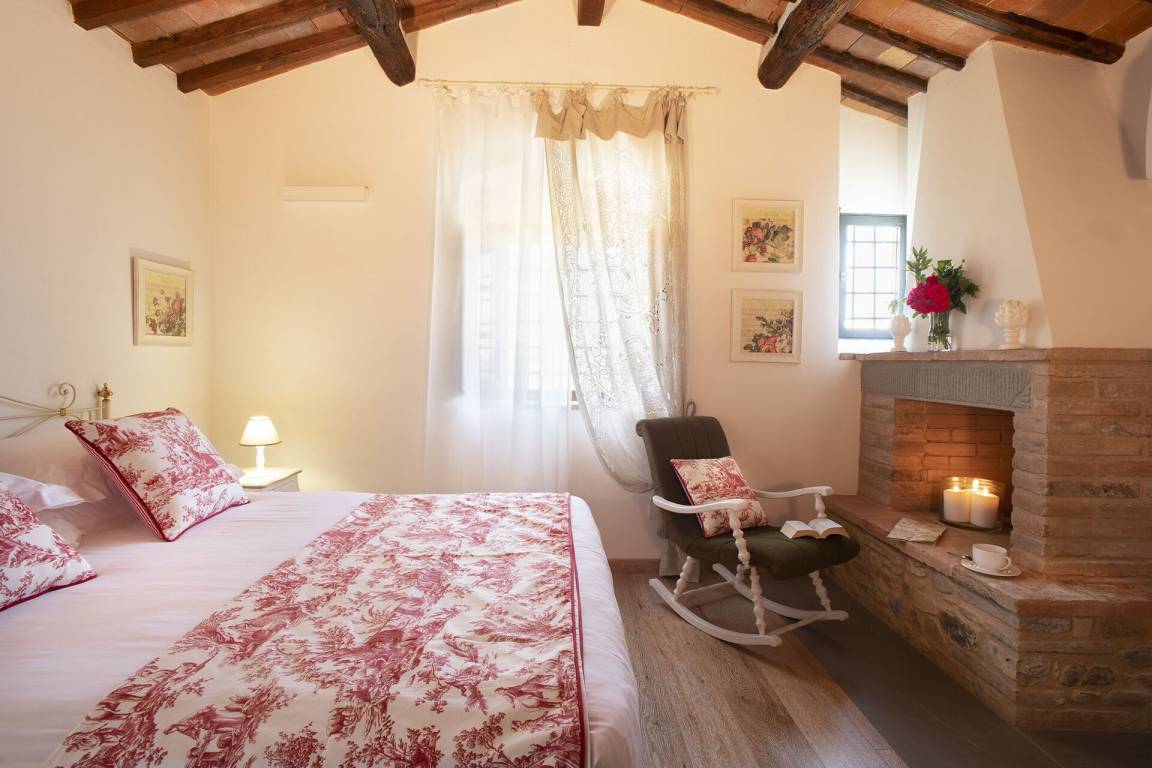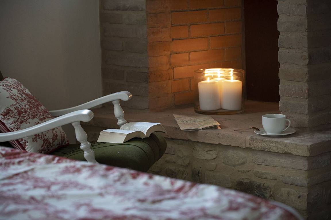 Schlafzimmer mit Bad 3 (23 m²): Doppelbett (Breite: 1.7m, Länge: 1.9m), WiFi Internet, Klimaanlage, Deckenventilator, Sessel, Kamin, Waschbecken, WC, Bidet, Dusche, Fön.