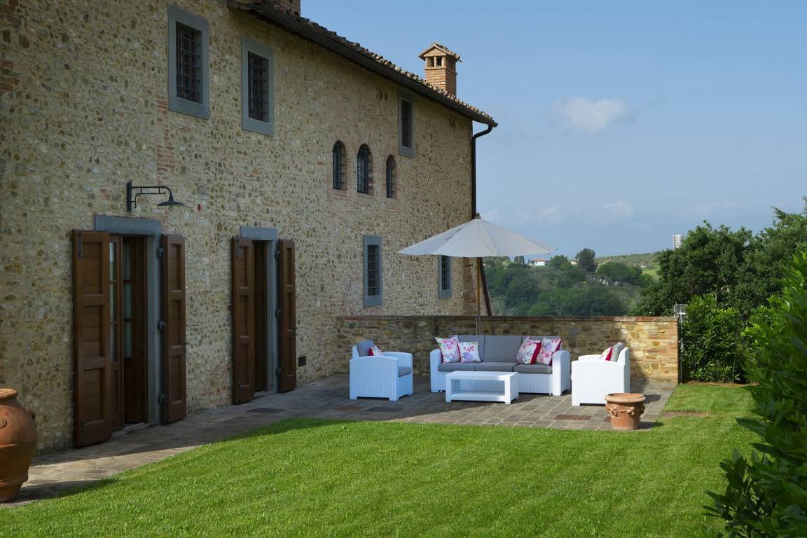 Wohnzimmer (28 m²): Sofa (Personen: 3), zwei Sessel, Kamin, WiFi Internet, Klimaanlage, Rauchmelder, CO2 Detektor, Ausgang auf den Garten, Ausgang auf die Terrasse.