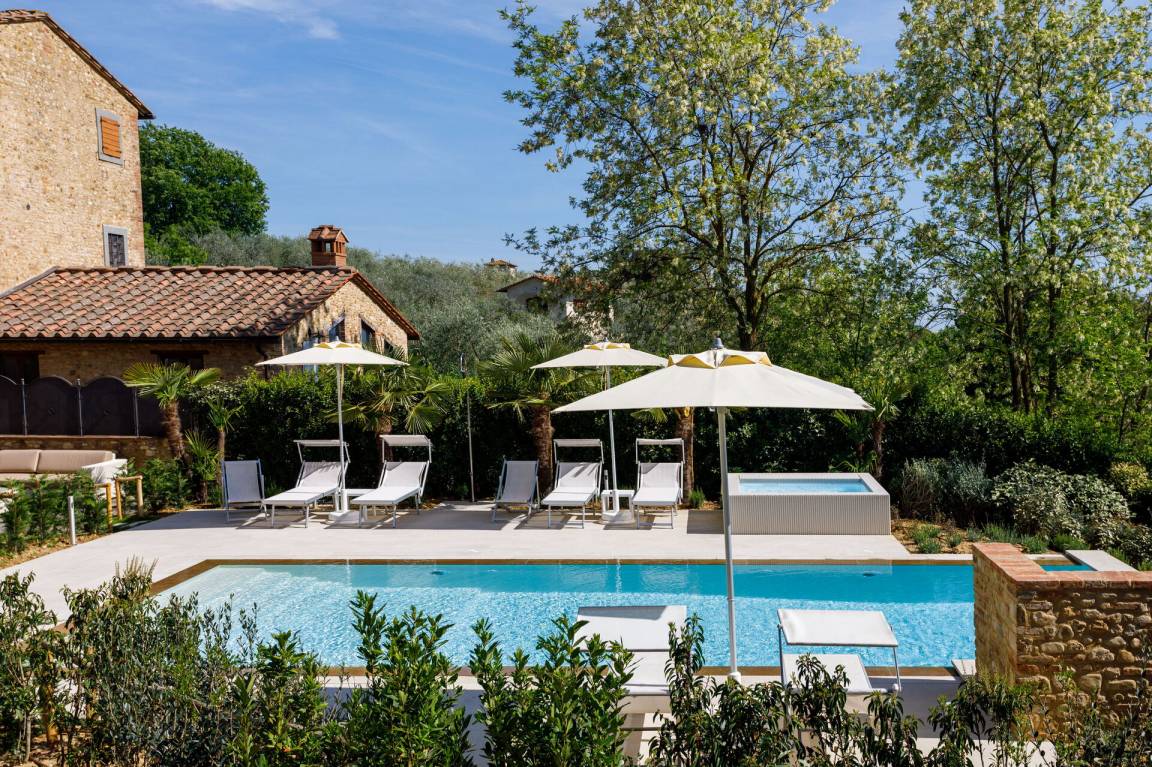Garten (5000 m²): Schwimmbad (privat, Breite: 5m, Länge: 10m, max. Tiefe: 2m, min. Tiefe: 0.5m, Außen, umzäunt), Heißwasser-Whirlpool im Freien (Breite: 2m, Länge: 2m), WiFi Internet, Grill, Außenbereich für das Essen im Freien, Esstisch (Personen: 12), Gartenmöbel, Sonnenliege, eingezäunt, umzäuntes Grundstück.