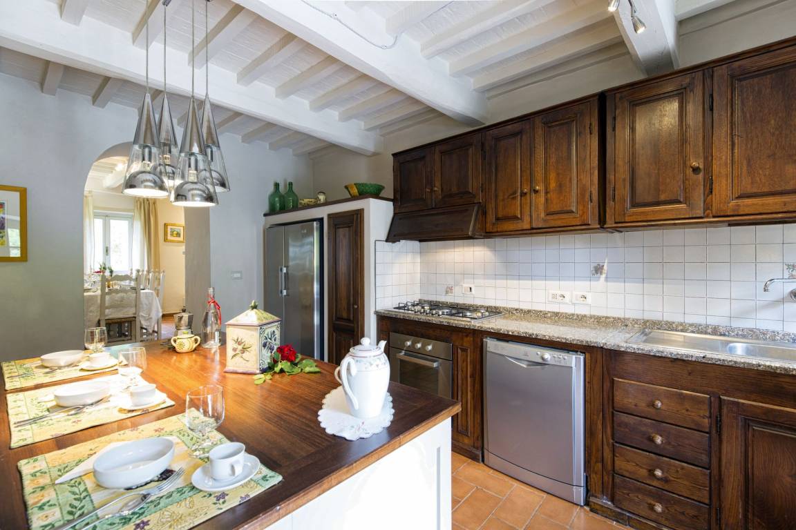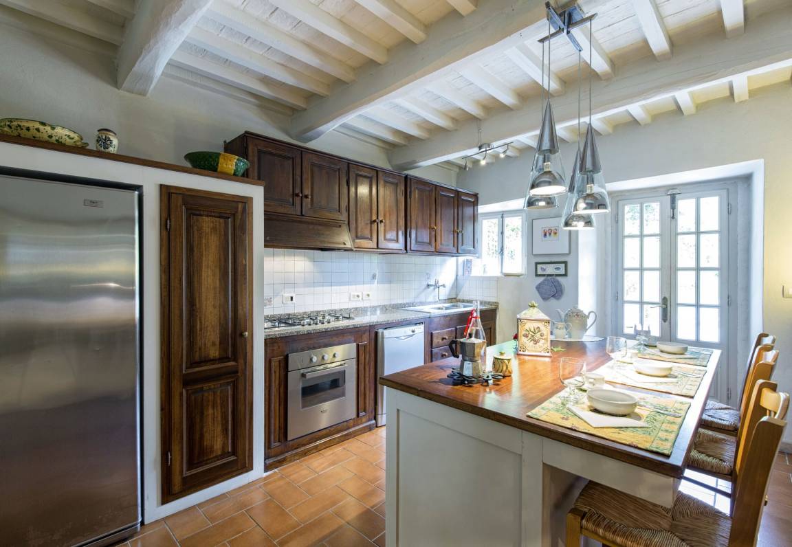 Küche: gut ausgestattete Küche, Spülmaschine, Kühlschrank, Tiefkühler, Mikrowelle, Herd, Ofen, Toaster, Italienische Kaffeemaschine, Amerikanische Kaffeemaschine, WiFi Internet, Ausgang auf den Garten.