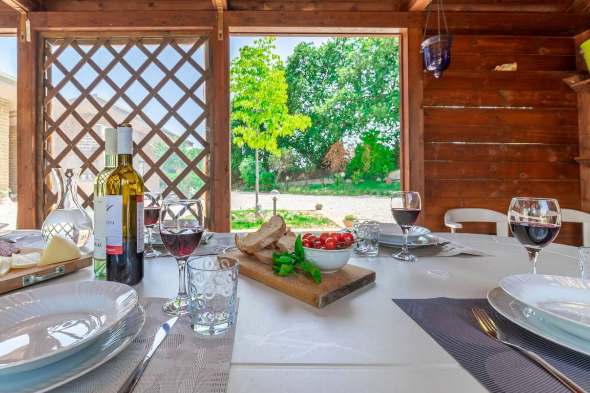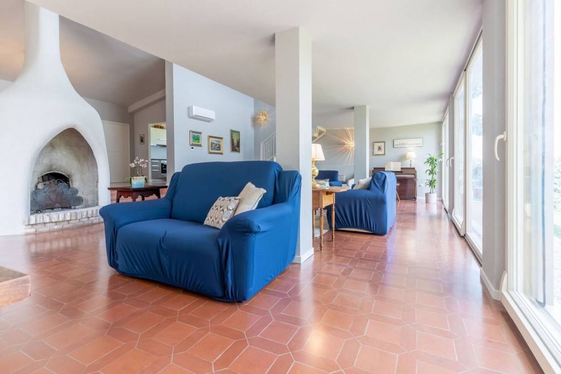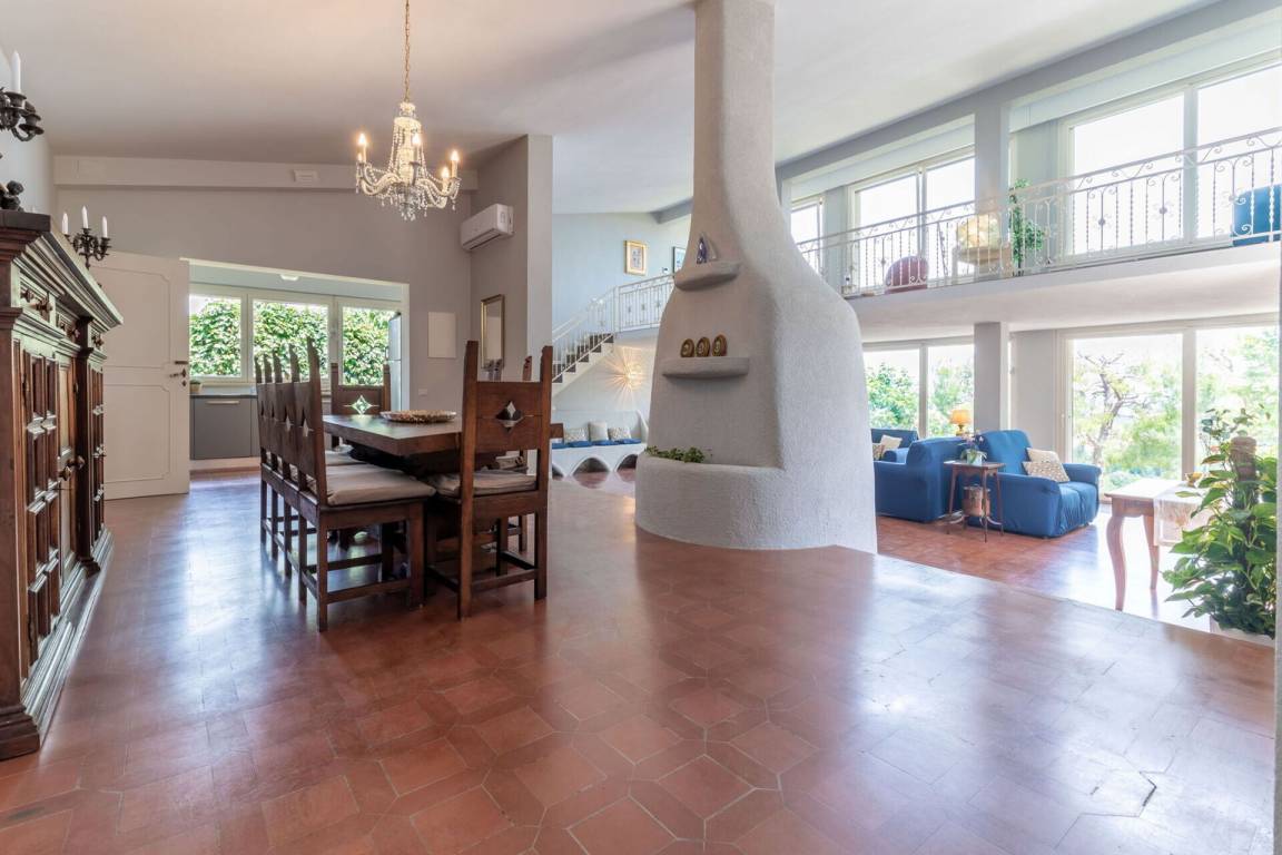 offener Raum: fünf Sofas, Kamin, Esstisch (Personen: 10), WiFi Internet, Klimaanlage, TV, Fliegengitter, Kühlschrank, Tiefkühler, Spülmaschine, gut ausgestattete Küche, Mikrowelle, Ofen, Italienische Kaffeemaschine, Ausgang auf den Garten, Galerie.