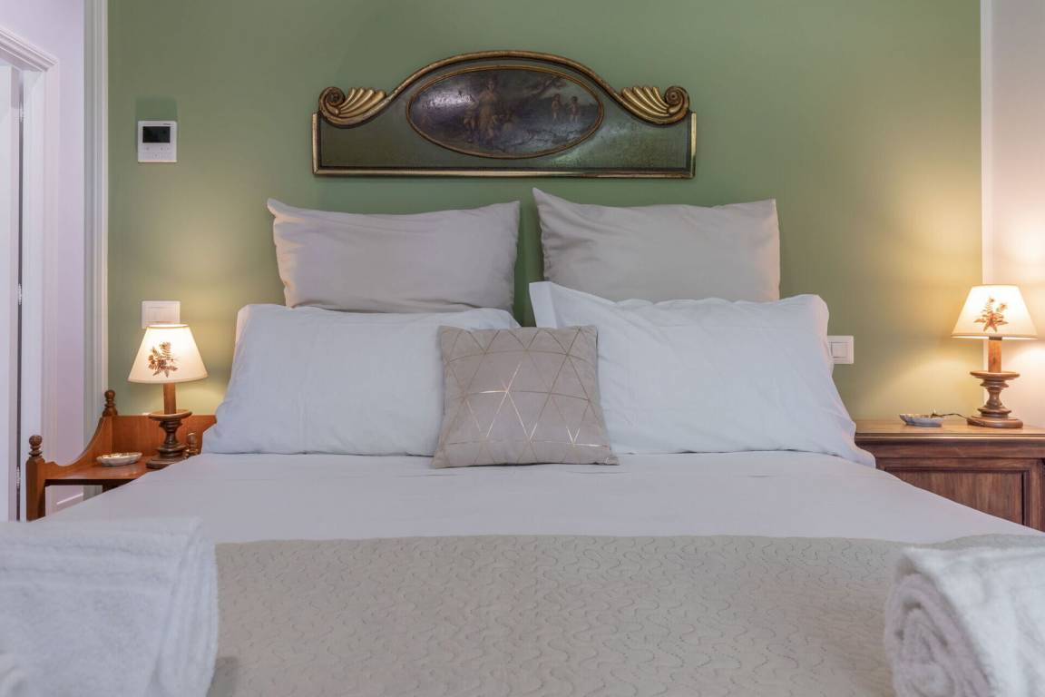 Schlafzimmer mit Bad: Doppelbett, WiFi Internet, Klimaanlage, Fliegengitter, Waschbecken, WC, Bidet, Dusche.