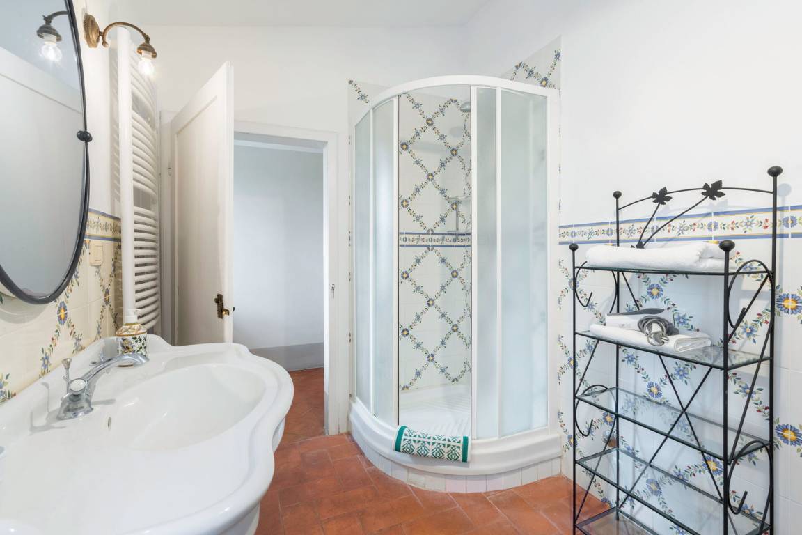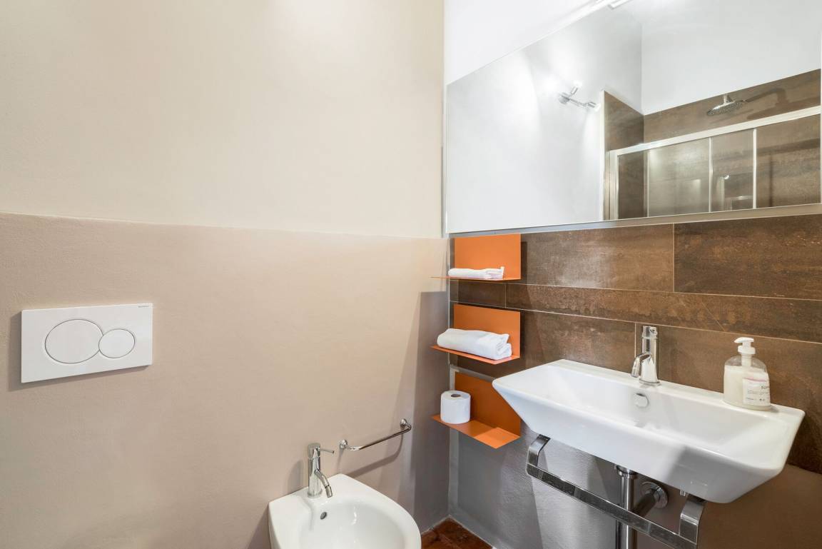 Badezimmer 1: Waschbecken, WC, Bidet, Dusche.