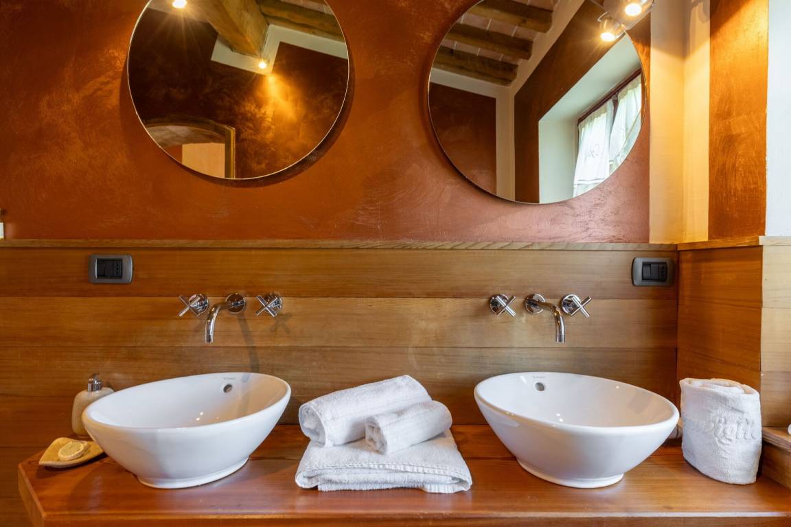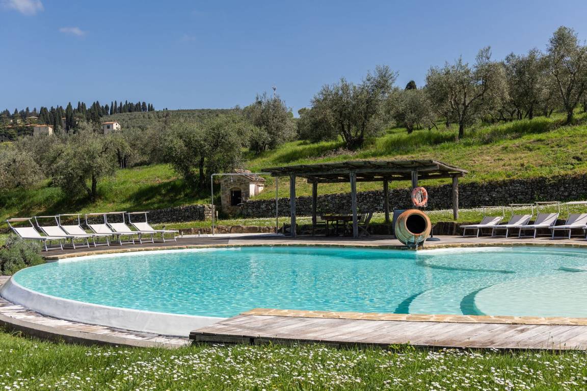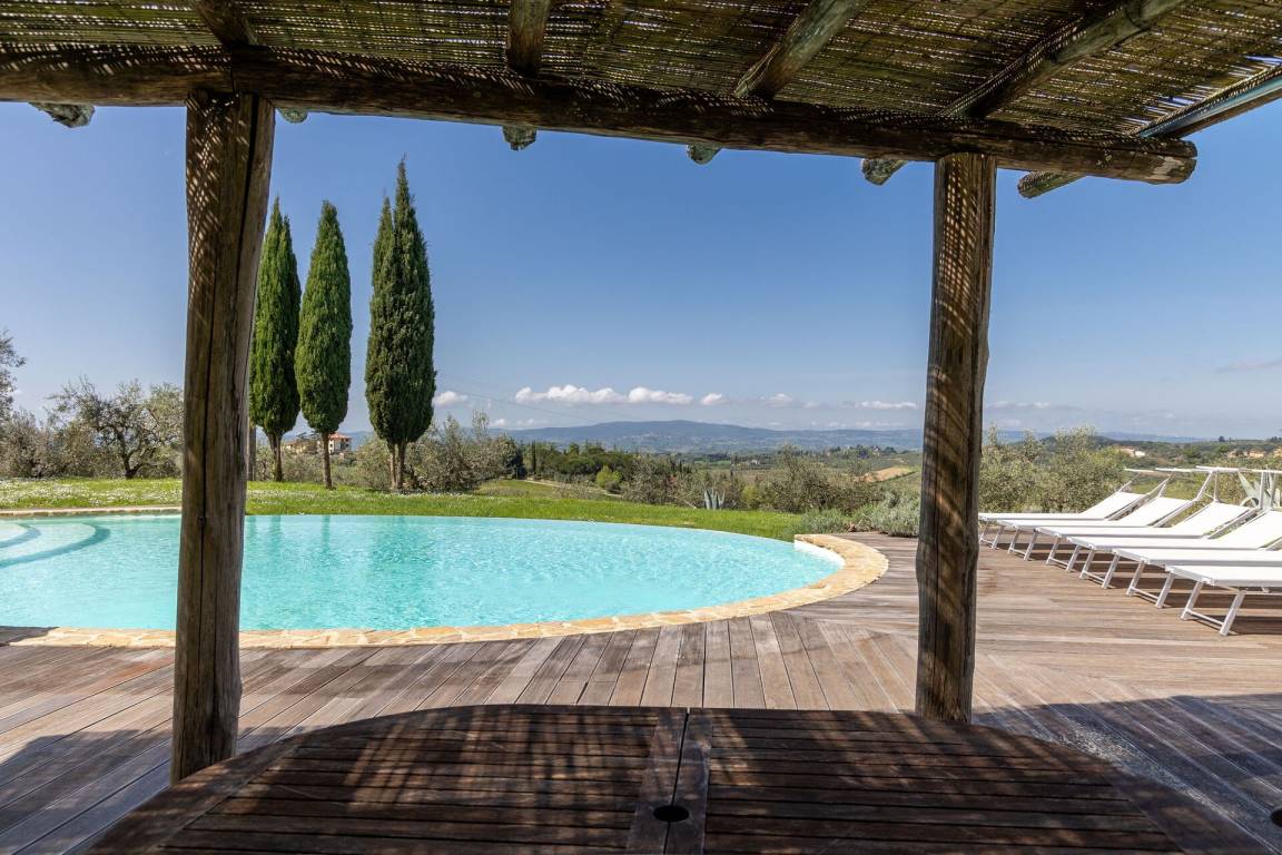 „This place is amazing. Family of 12 went and was wonderful. The whole place is brilliant. One villa with 5 rooms and a separate 2 bedroom villa. Views are breathless. Location is good and easy access to pretty much everywhere. We went to Florence, Siena and numerous medieval villages all easily within an hours drive. We will be back. We went last week of May and unfortunately weather wasn’t great and rained but didn’t put us off site seeing. The place is so good that if it were sunny all the time we wouldn’t have wanted to leave the amazing swimming pool. The owners have a real gem here and the wine they make on the vineyard is very good.“