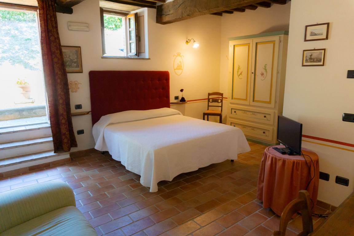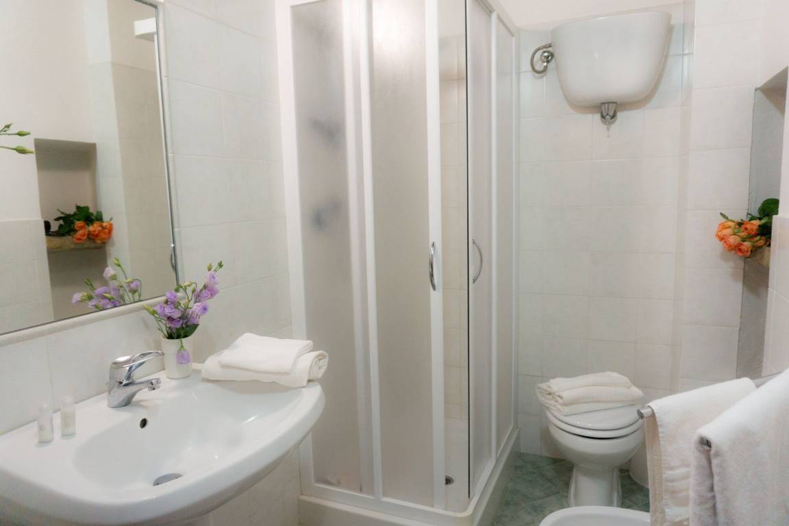 Schlafzimmer mit Bad 1: Doppelbett, WiFi Internet, Waschbecken, WC, Bidet, Dusche.