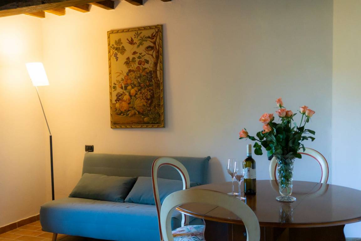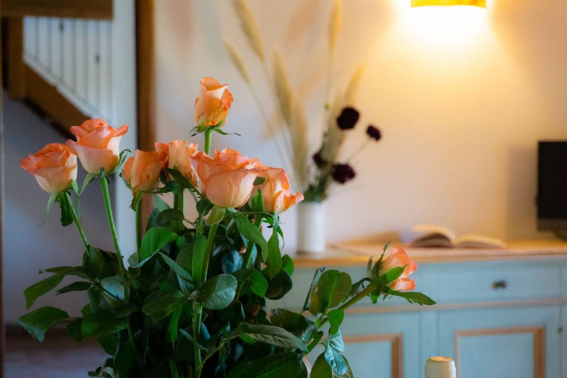 Wohnzimmer: Sofa, Kamin, WiFi Internet, TV, Ausgang auf die Veranda.