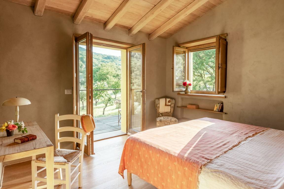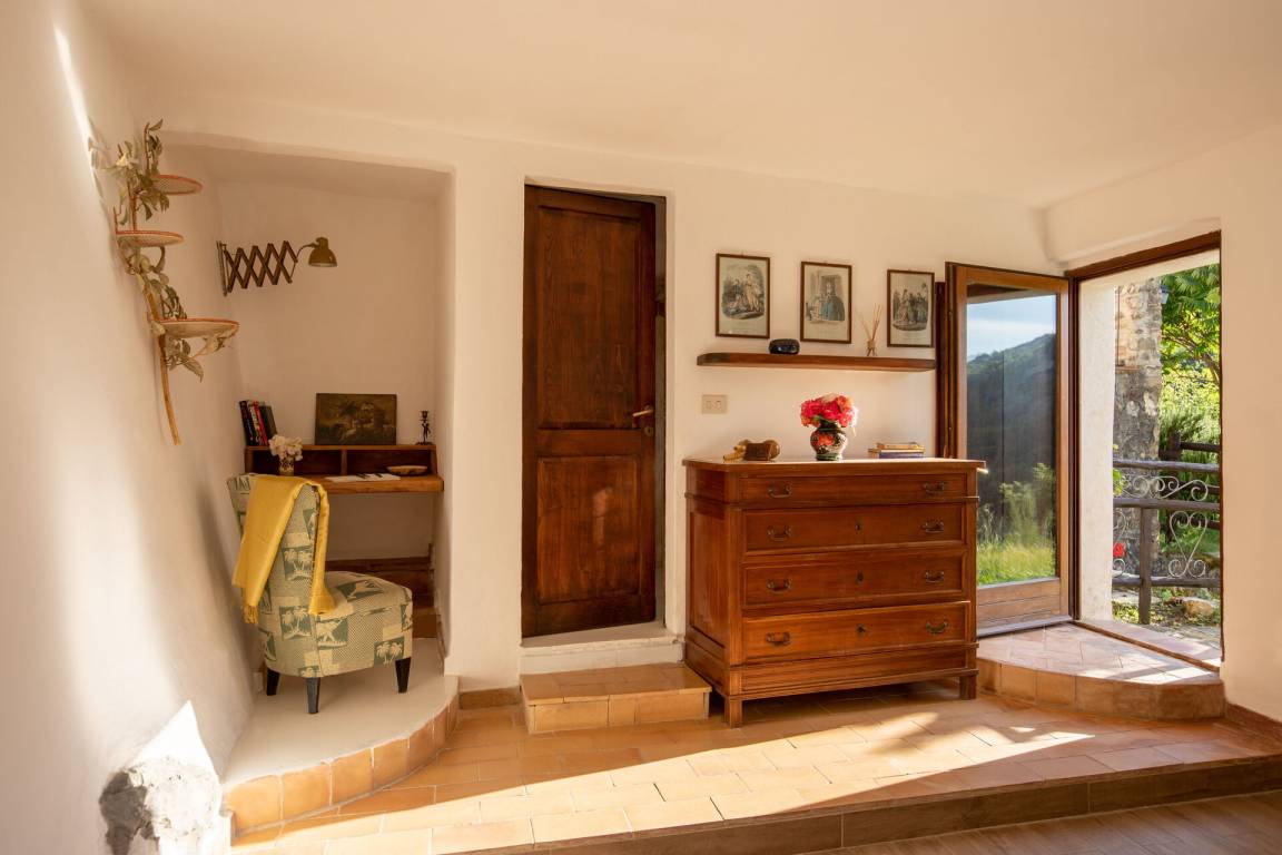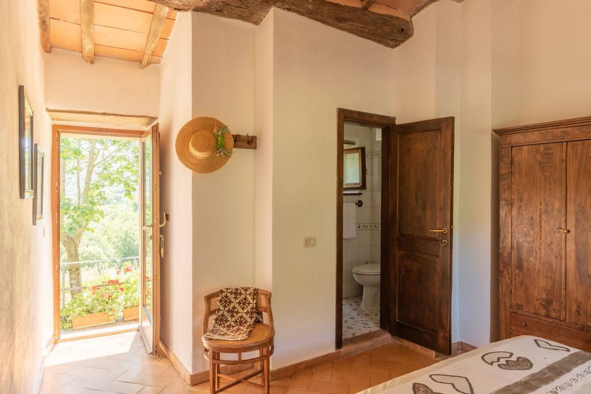 Schlafzimmer mit Bad 2: Doppelbett, WiFi Internet, Waschbecken, WC, Bidet, Dusche, Fön, Ausgang auf den Garten.