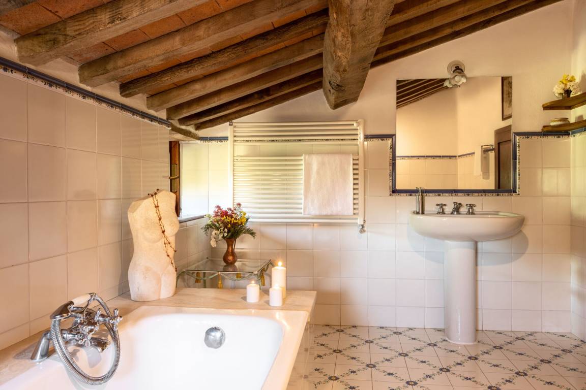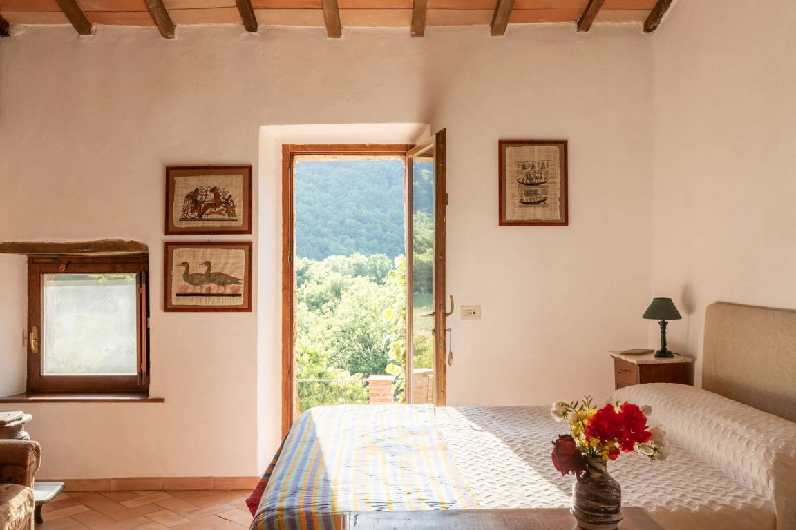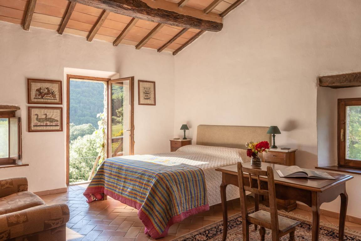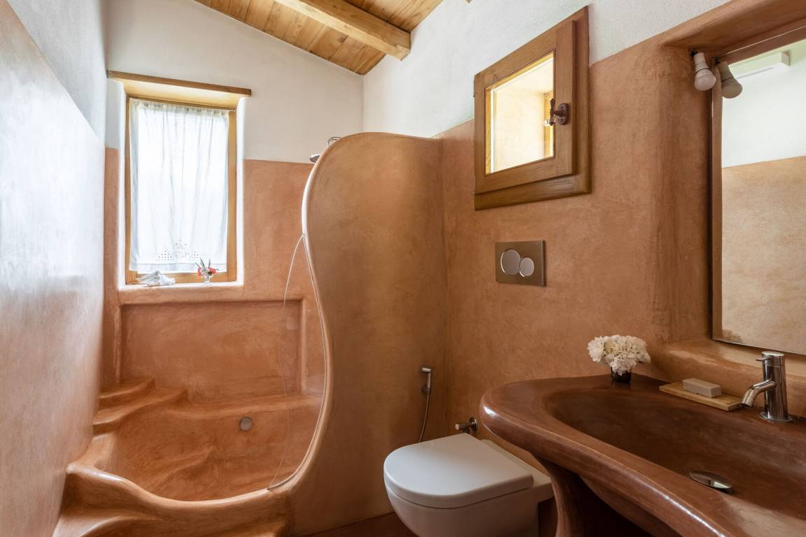 Schlafzimmer mit Bad 2: Doppelbett, WiFi Internet, Waschbecken, WC, Bidet, Dusche, Fön, Ausgang auf den Garten.