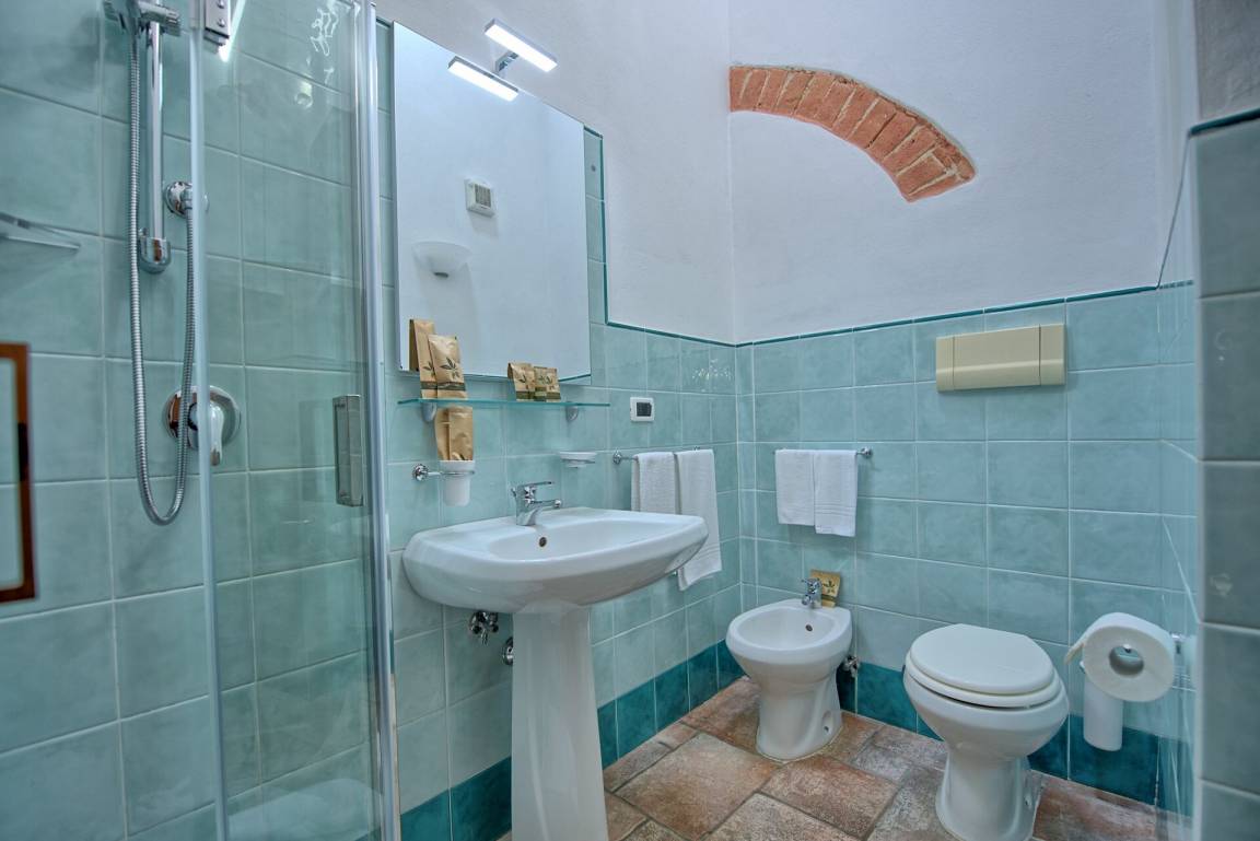 Erster Stock: Schlafzimmer mit Doppelbett, Badezimmer mit Dusche, Schlafzimmer mit einem Einzelbett.