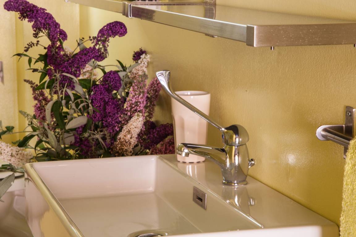 Badezimmer 1: Waschbecken, WC, Bidet, Dusche.