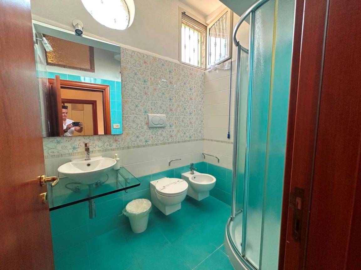Badezimmer 1: Waschbecken, WC, Bidet, Dusche.