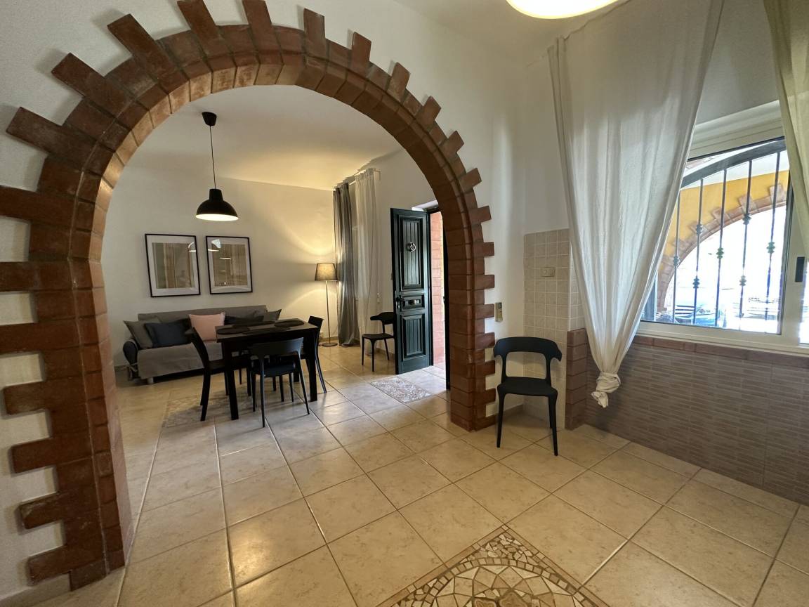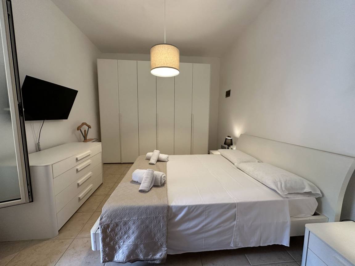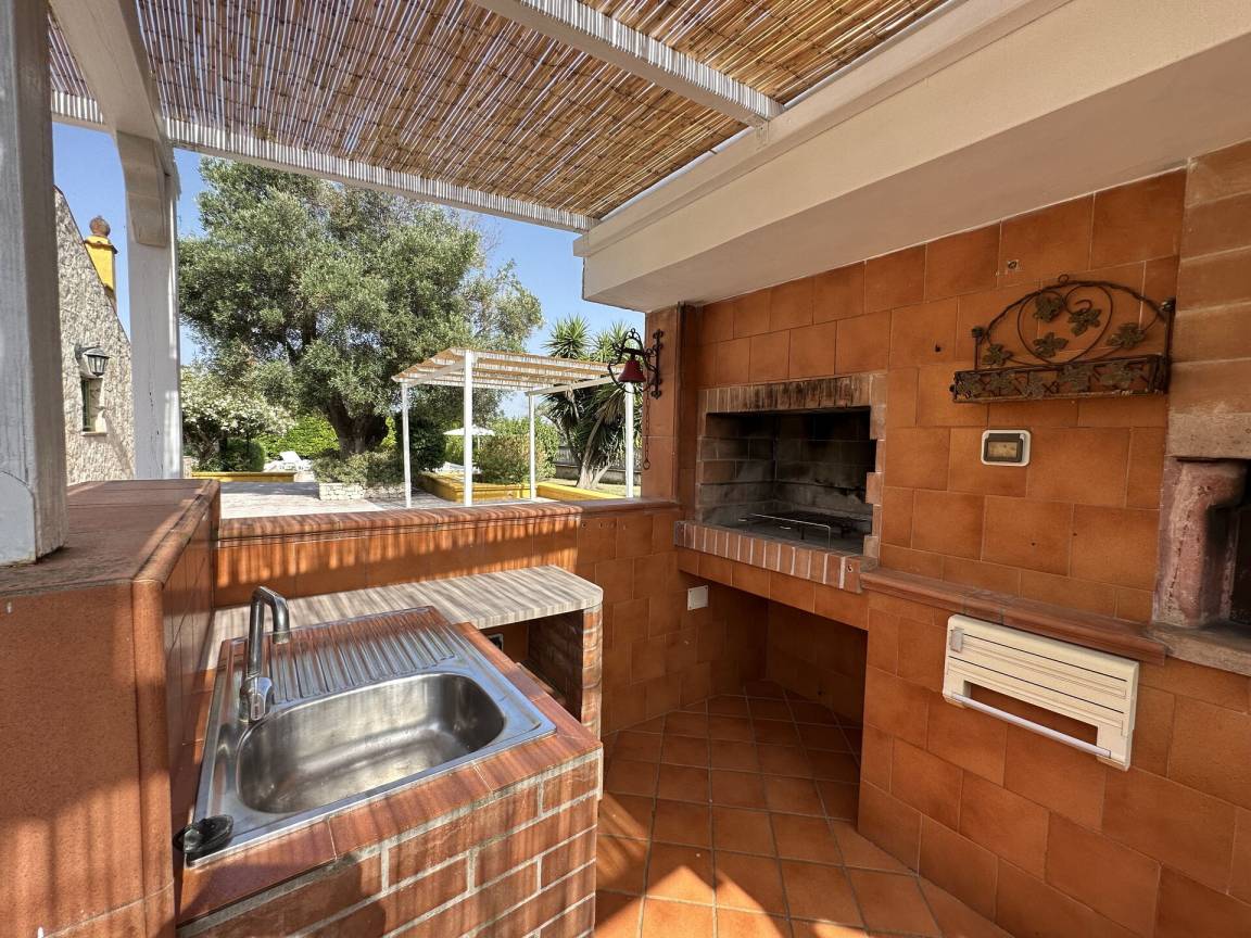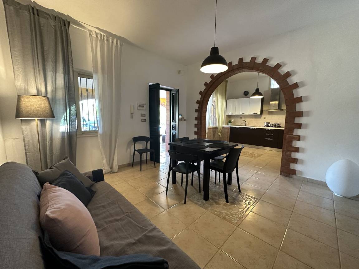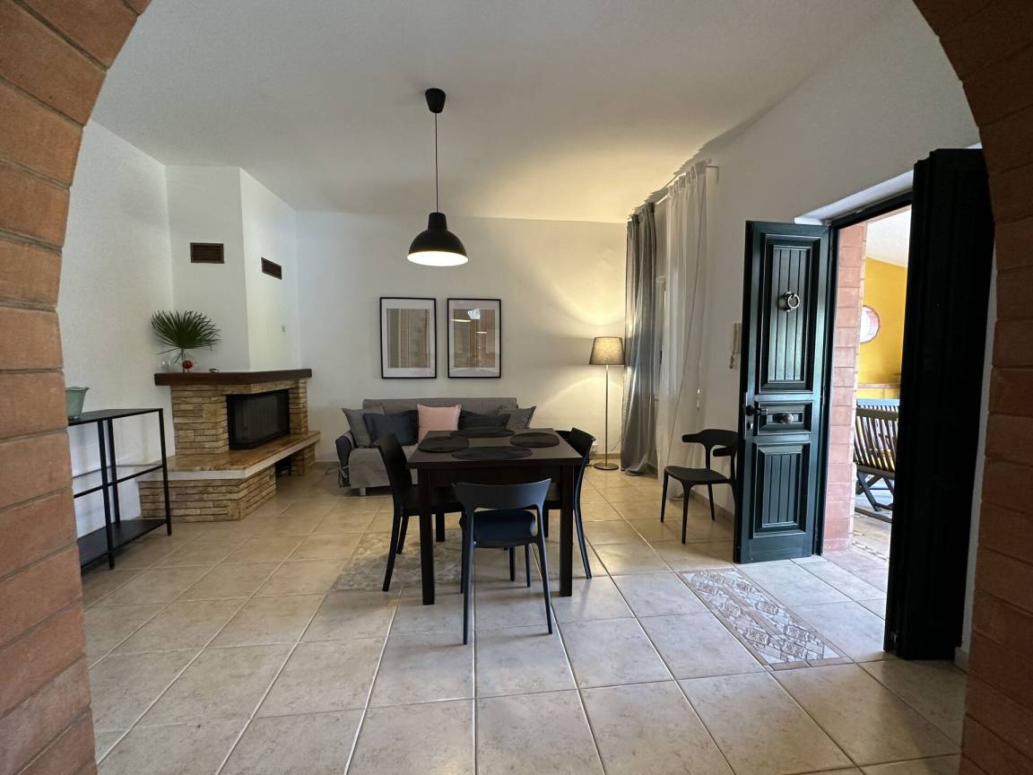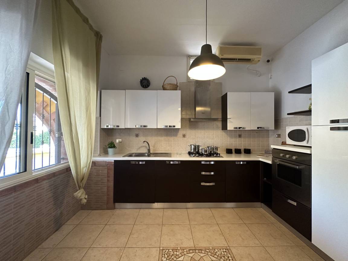 Wohnküche: gut ausgestattete Küche, Esstisch, Spülmaschine, Kühlschrank, Tiefkühler, Mikrowelle, Herd, Ofen, Italienische Kaffeemaschine, Sofa, WiFi Internet, Klimaanlage, Fliegengitter, TV, Ausgang auf den Garten, Ausgang auf die Veranda.