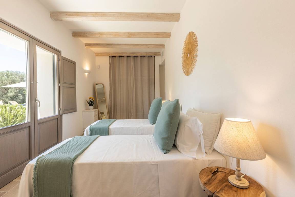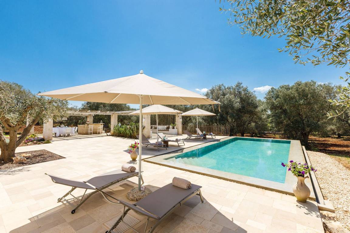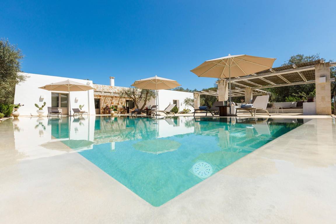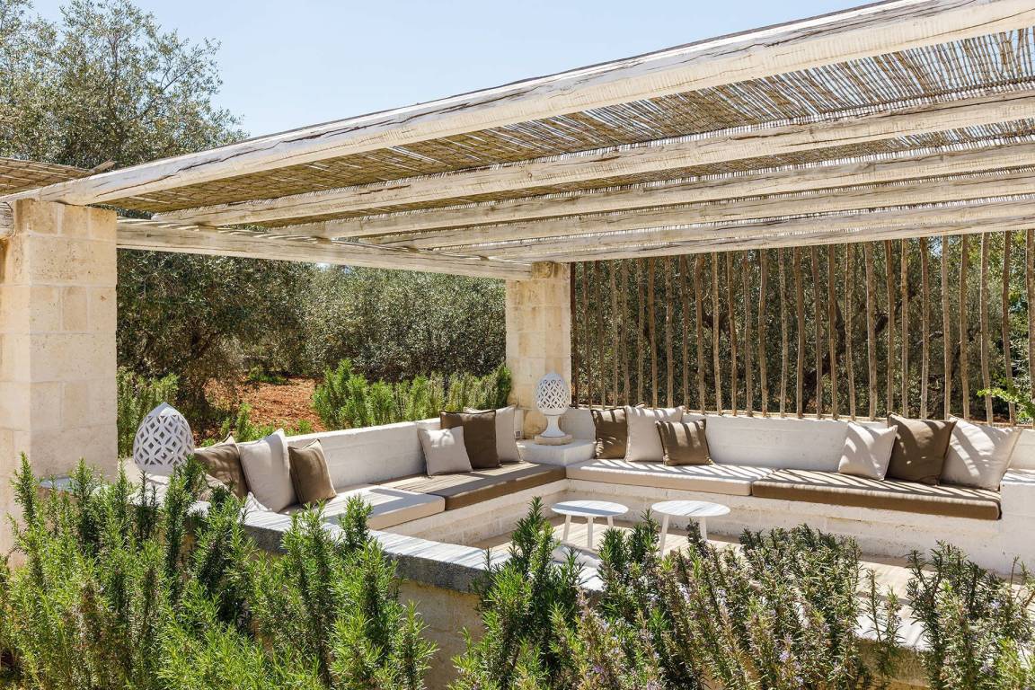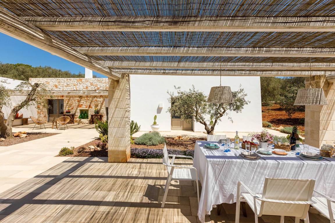 Der private Garten umfasst einen Swimmingpool. Die Außenbereiche sind so angeordnet, dass sie sowohl Freizeit- als auch Essmöglichkeiten bieten, wobei die überdachte Terrasse auch während der wärmsten Tageszeiten Schatten und Komfort spendet.
