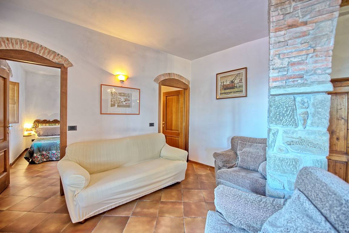 Das Appartament Fienile besteht aus eine Wohnraum mit Kamin und Essplatz, Kleine Küche (4 Flammen, Backofen, Geschirrspüler, Gefrierschrank, Kaffeemaschine), 4 Doppelzimmer, 2 Badzimmer mit Dusche.