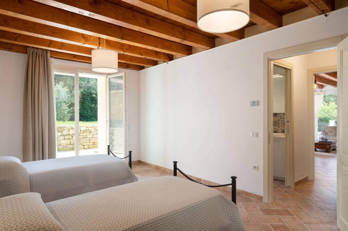 Schlafzimmer: drei Einzelbetten, WiFi Internet, Klimaanlage, Ausgang auf den Garten.
