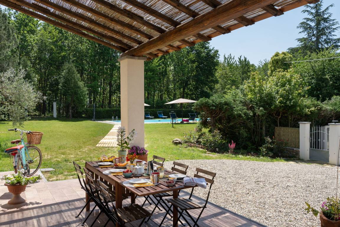 Garten: Schwimmbad (privat, Breite: 7m, Länge: 14m, max. Tiefe: 2.2m, min. Tiefe: 1.2m, Außen), Dusche, WiFi Internet, Grill, Außenbereich für das Essen im Freien, Esstisch (Personen: 8), Gartenmöbel, sechs Sonnenliegen, umzäuntes Grundstück.