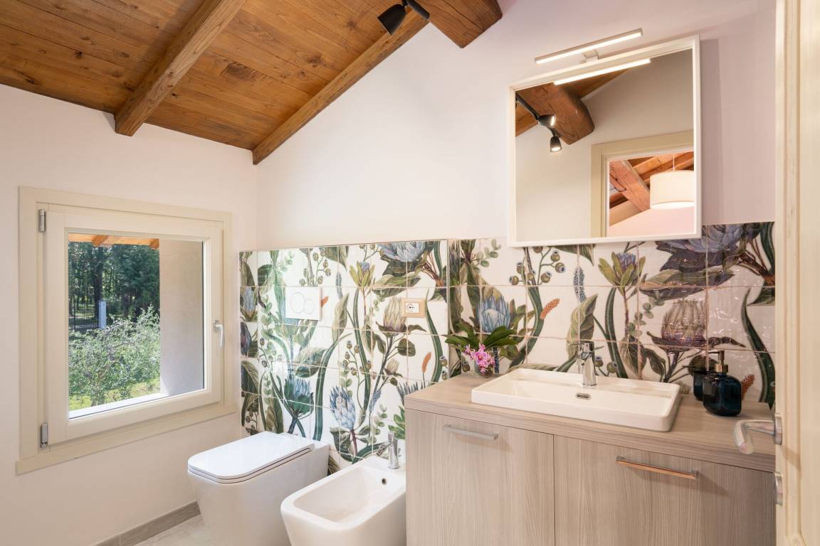 Schlafzimmer mit Bad 2: Doppelbett, WiFi Internet, Klimaanlage, Waschbecken, WC, Bidet, Dusche.