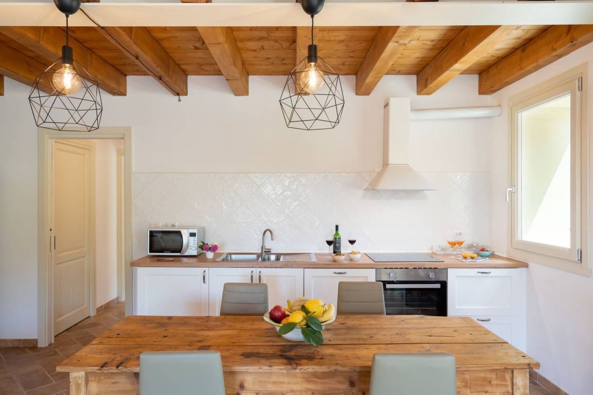 Wohnküche: gut ausgestattete Küche, Esstisch, Spülmaschine, Kühlschrank, Tiefkühler, Mikrowelle, Herd, Ofen, Toaster, Italienische Kaffeemaschine, Sofa (Personen: 7), WiFi Internet, Klimaanlage, Satelliten-TV, Ausgang auf den Patio.