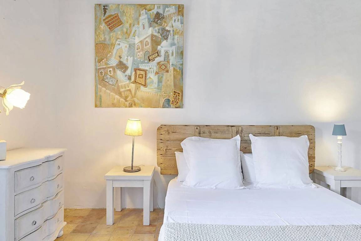 Die Villa verfügt über eine Gesamtfläche von etwa 300 Quadratmetern, verteilt auf mehrere Geschosse, und bietet Platz für bis zu 12 Gäste in 6 Schlafzimmern und 4 Bädern. Die Schlafzimmer sind großzügig geschnitten und mit unterschiedlichen Bettkonfigurationen ausgestattet, die sowohl Paare als auch Familien berücksichtigen. Die Bäder sind vollständig ausgestattet und bieten die üblichen Sanitäreinrichtungen. Die Innenräume sind offen gestaltet und verbinden sich nahtlos mit den Außenbereichen durch großflächige Öffnungen, die den Blick auf die umgebende Landschaft freigeben.