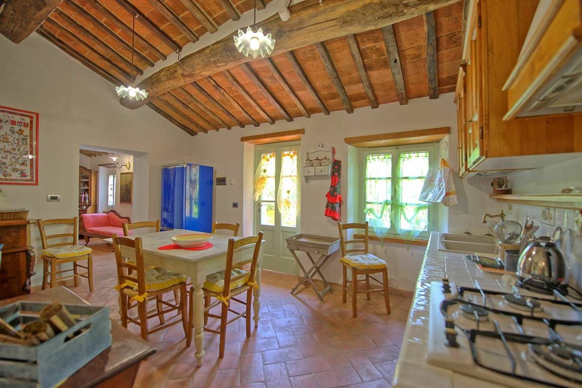 Küche (Backofen, Gefrierschrank) mit Essbereich, Wohnzimmer mit Kamin, Doppelzimmer mit Ehebett mit pürivatem Bad mit Dusche, Bad mit Badewanne,Doppelzimmer mit Ehebett (Klimaanlage) .