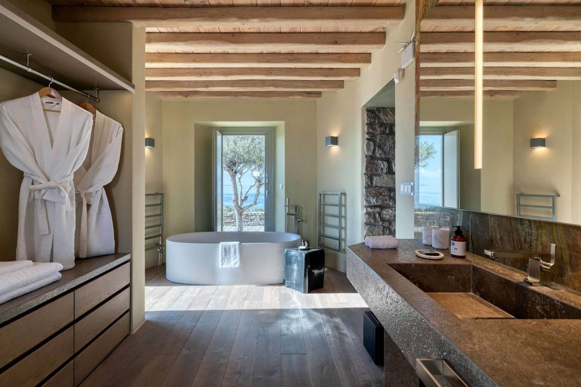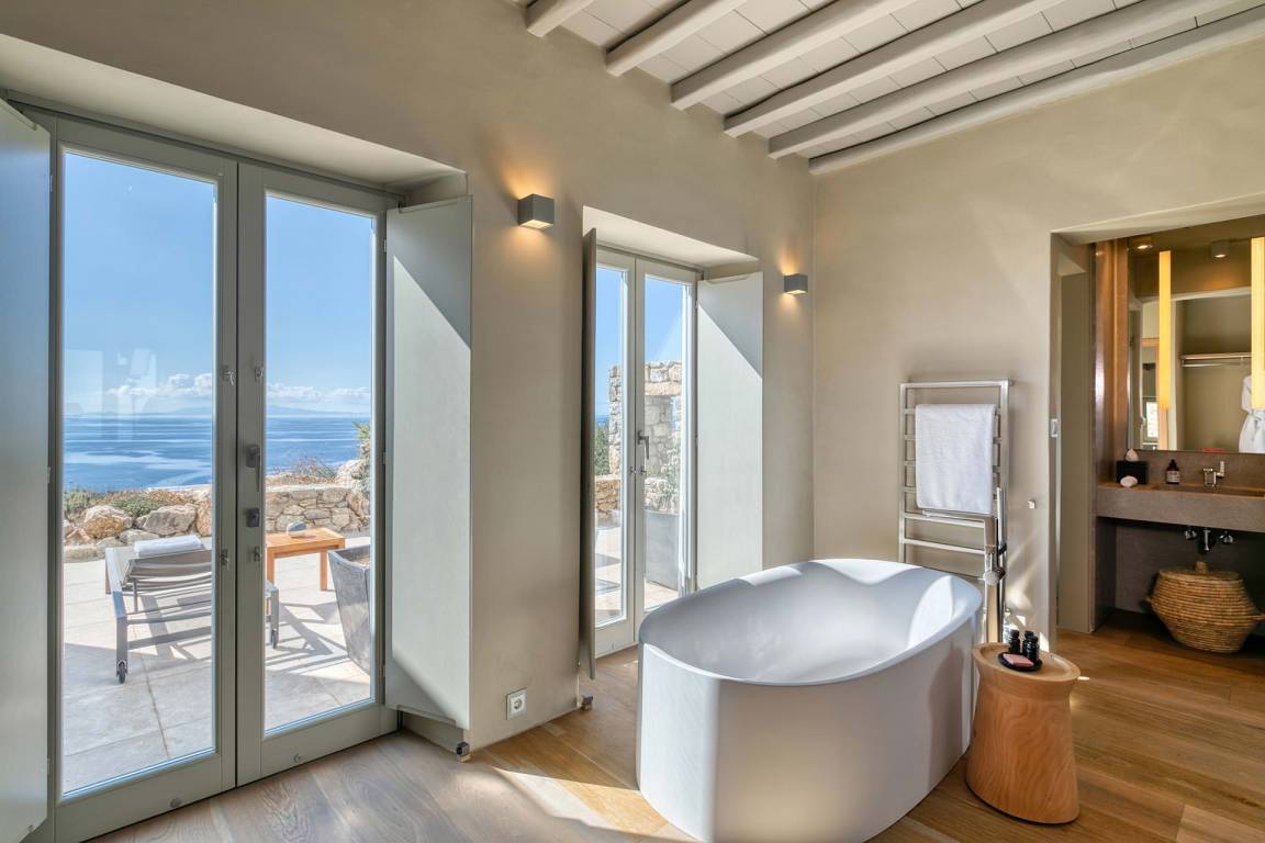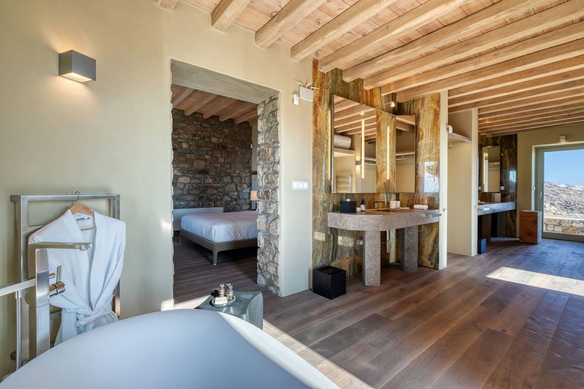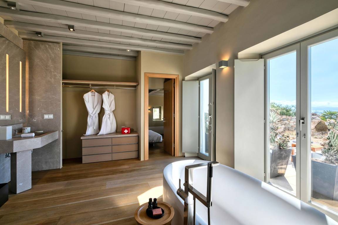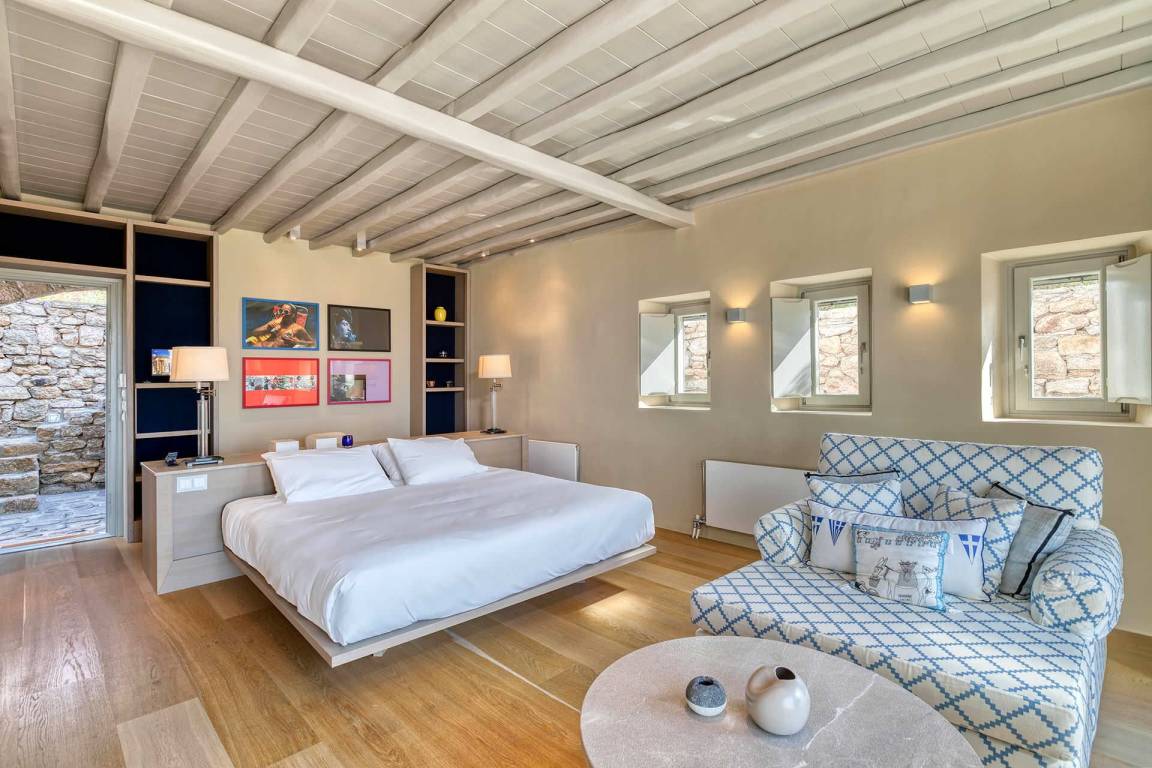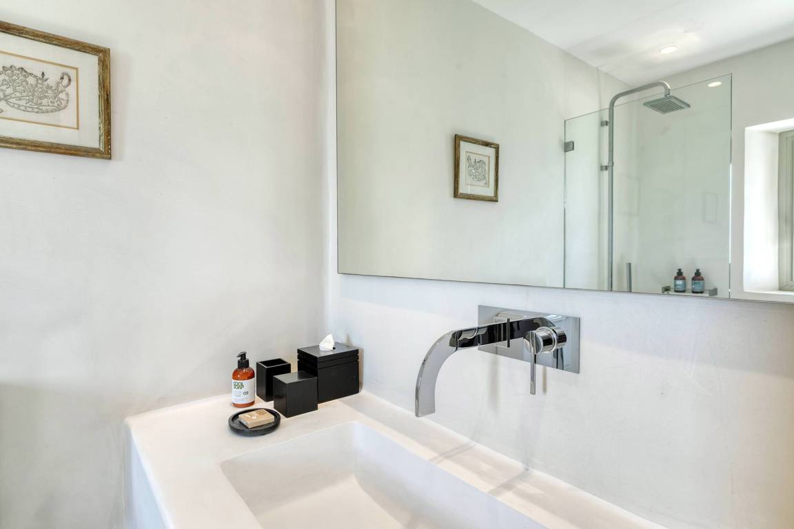 Die Villa Virgil umfasst insgesamt 7 Schlafzimmer und 6 Badezimmer und bietet Platz für bis zu 14 Gäste auf mehreren Geschossen. Die Schlafzimmer sind großzügig geschnitten und ermöglichen verschiedene Belegungskombinationen für Gruppen und Familien. Die Badezimmer sind hochwertig ausgestattet und verteilen sich über die Etagen, um allen Gästen einen bequemen Zugang zu ermöglichen. Die Villa ist so gestaltet, dass Gemeinschaftsbereiche und private Rückzugsorte ausgewogen verteilt sind.