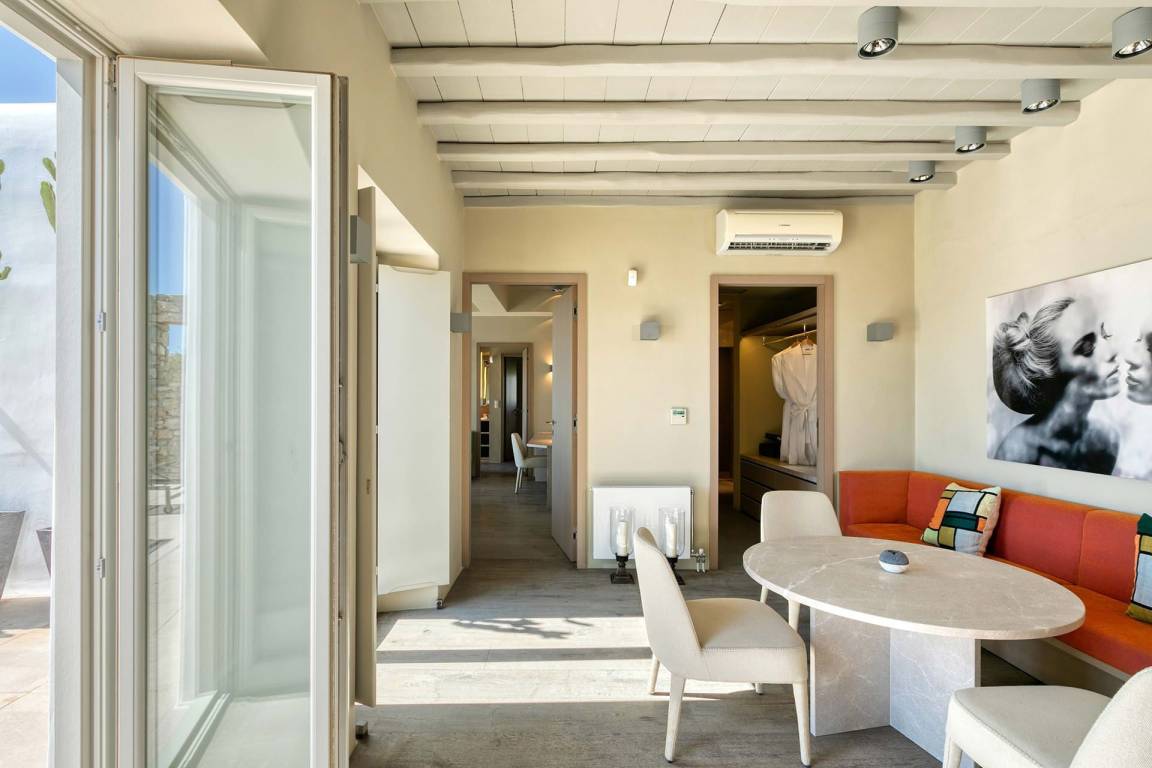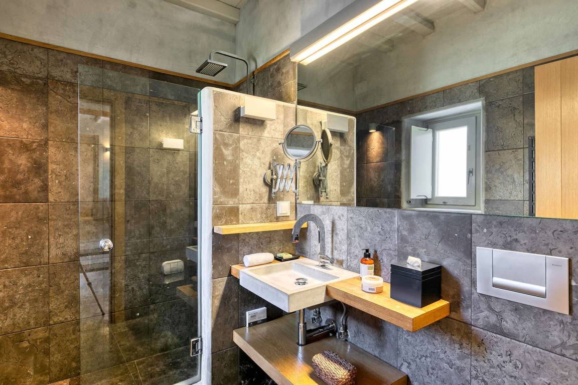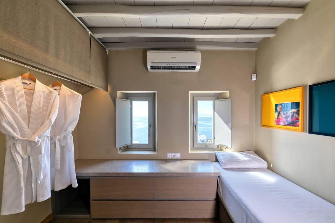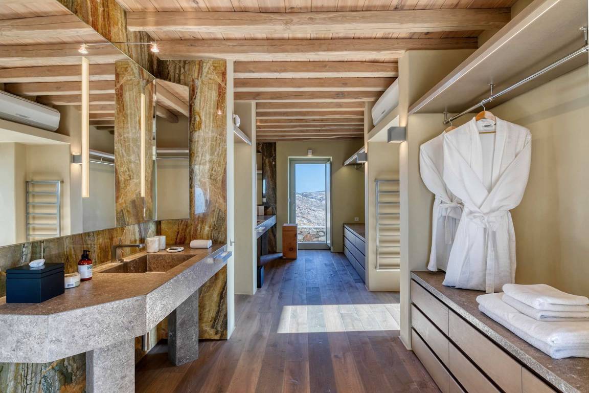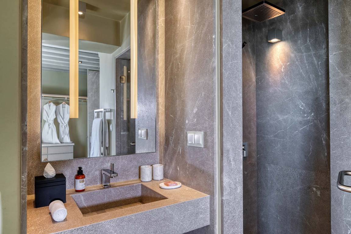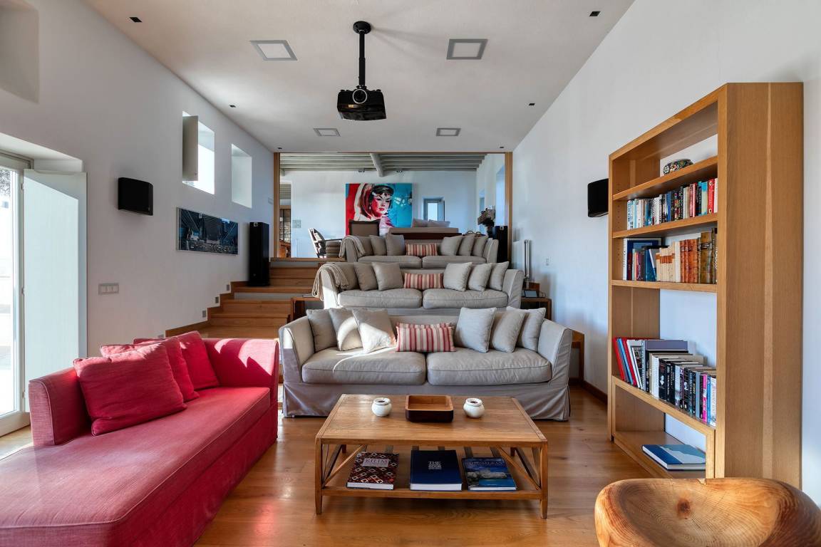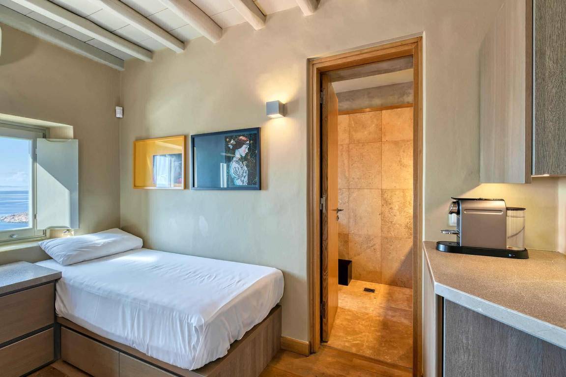 Die Villa Virgil umfasst insgesamt 7 Schlafzimmer und 6 Badezimmer und bietet Platz für bis zu 14 Gäste auf mehreren Geschossen. Die Schlafzimmer sind großzügig geschnitten und ermöglichen verschiedene Belegungskombinationen für Gruppen und Familien. Die Badezimmer sind hochwertig ausgestattet und verteilen sich über die Etagen, um allen Gästen einen bequemen Zugang zu ermöglichen. Die Villa ist so gestaltet, dass Gemeinschaftsbereiche und private Rückzugsorte ausgewogen verteilt sind.