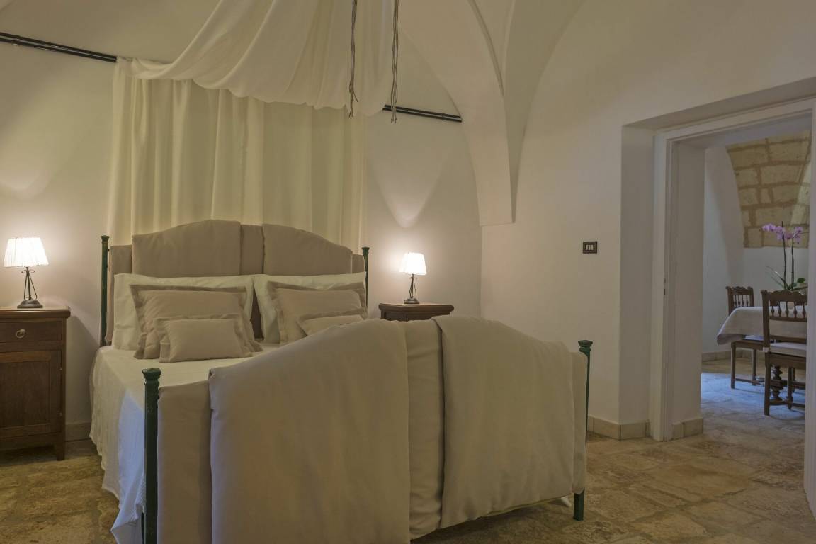 Masseria Ortensia (75 m²) ist eine zwei-Zimmer Wohneinheit, die auf eins Stockwerk gebaut ist, mit eins Badezimmer. Hier können bis zu vier Gäste unterkommen. Einige Zimmer sind für Ihren Komfort mit Klimaanlage ausgestattet (siehe bitte die Zimmer Einzelheiten hier unten).