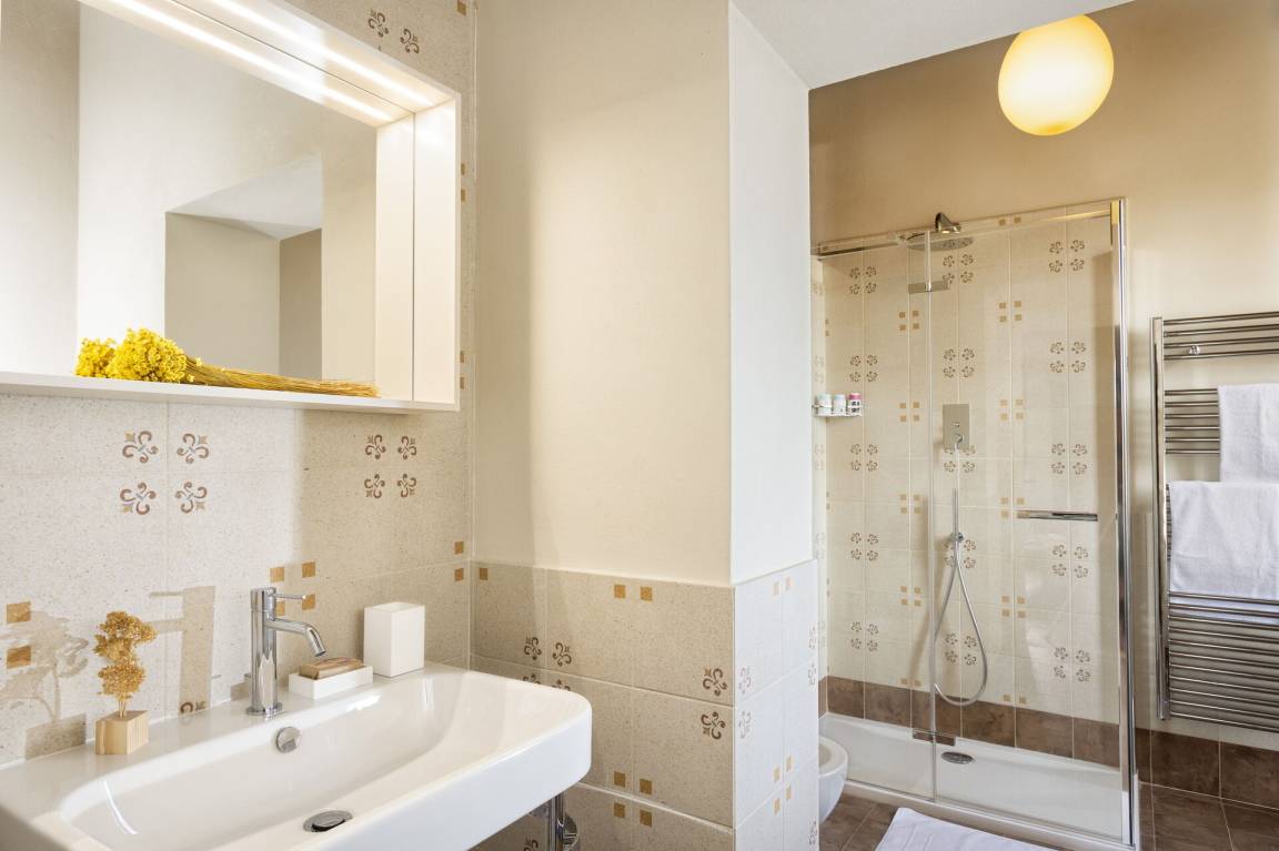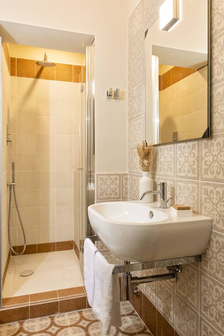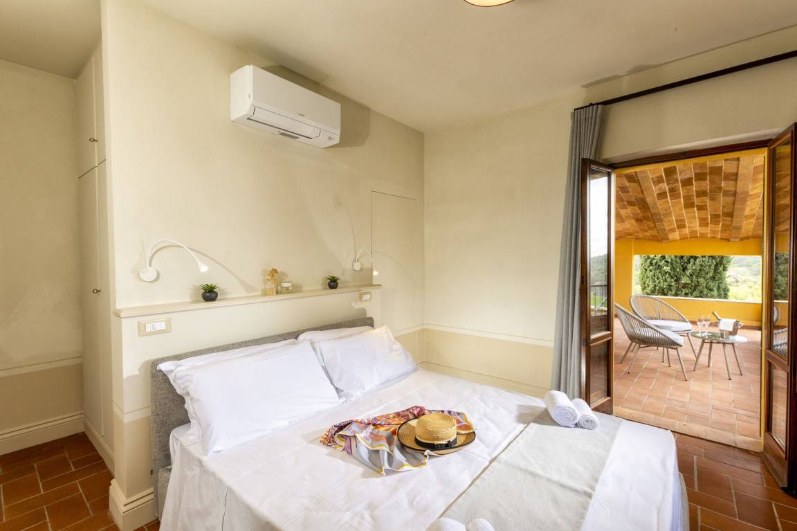 Schlafzimmer mit Bad 1: Doppelbett, WiFi Internet, Klimaanlage, Fliegengitter, Kamin, Waschbecken, WC, Bidet, Dusche, Fön.