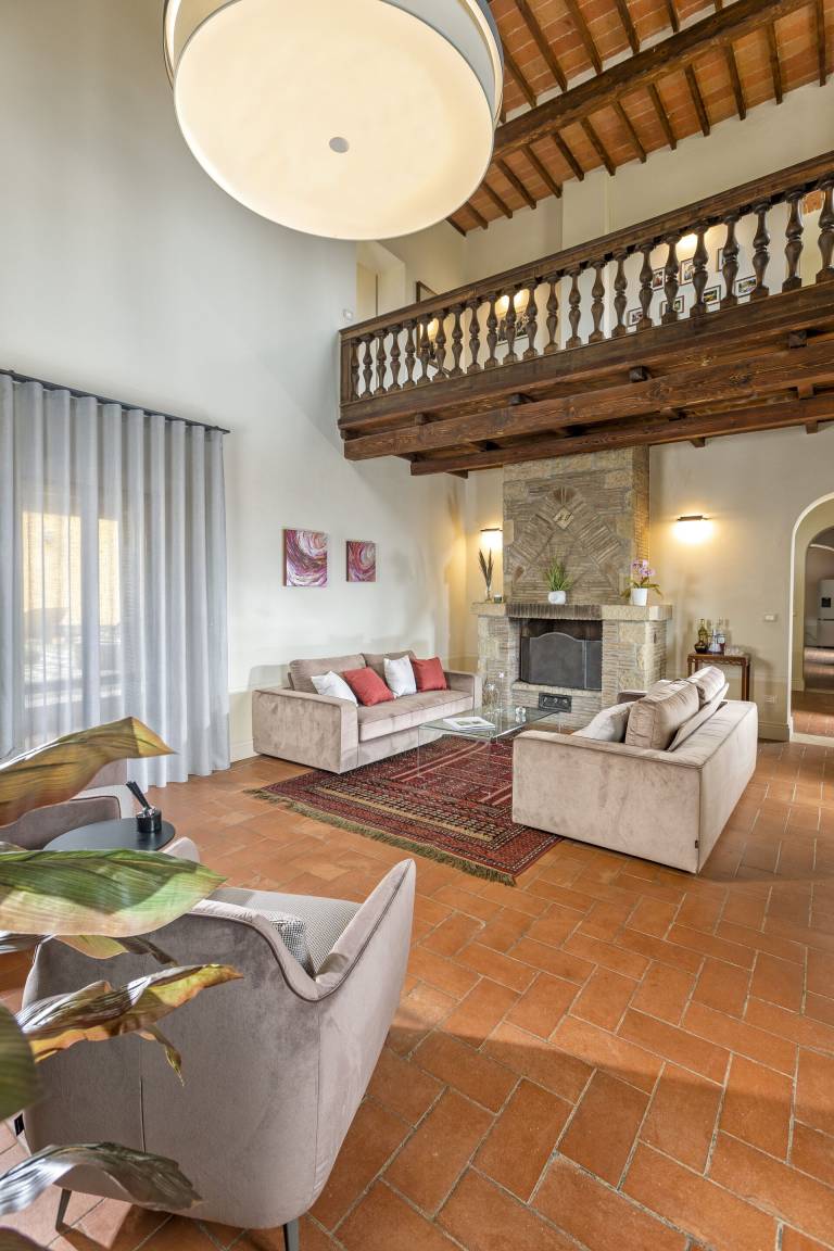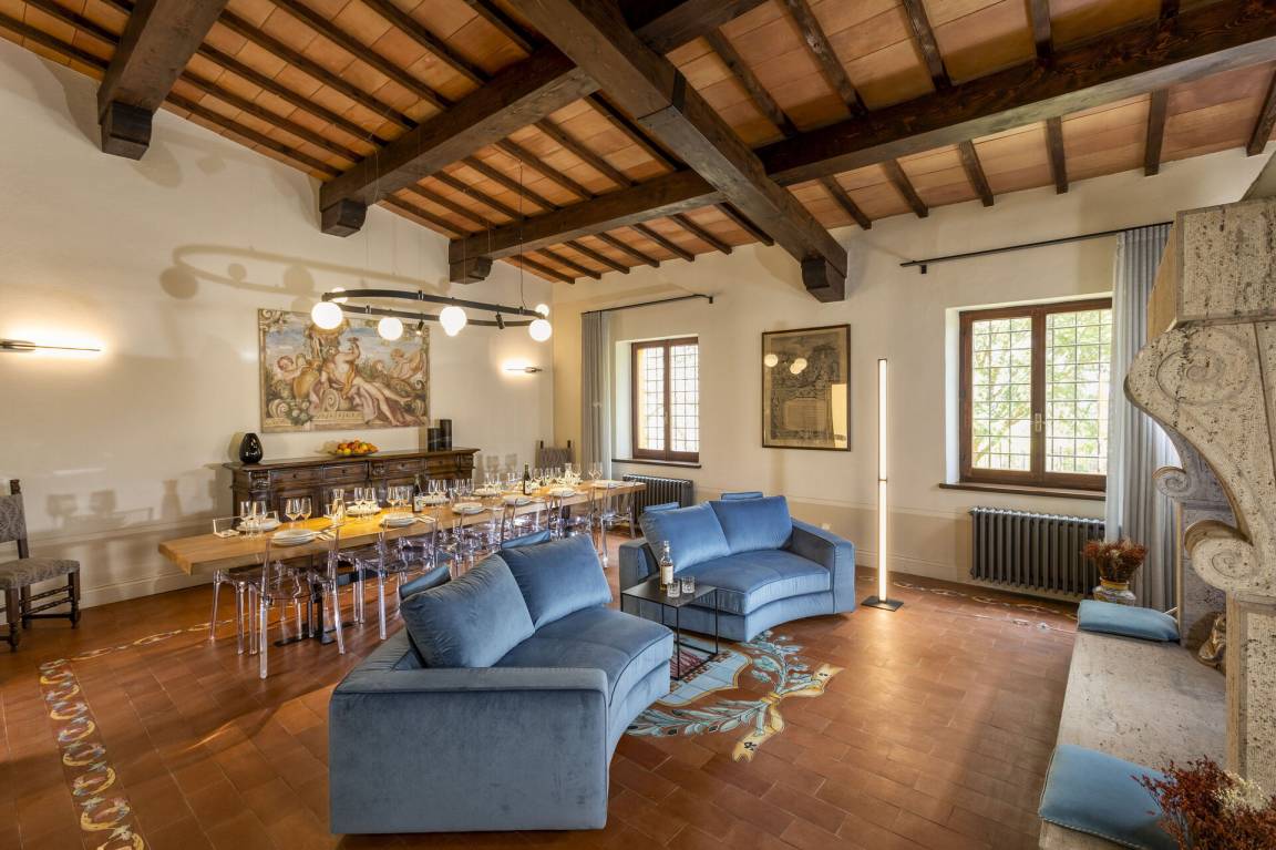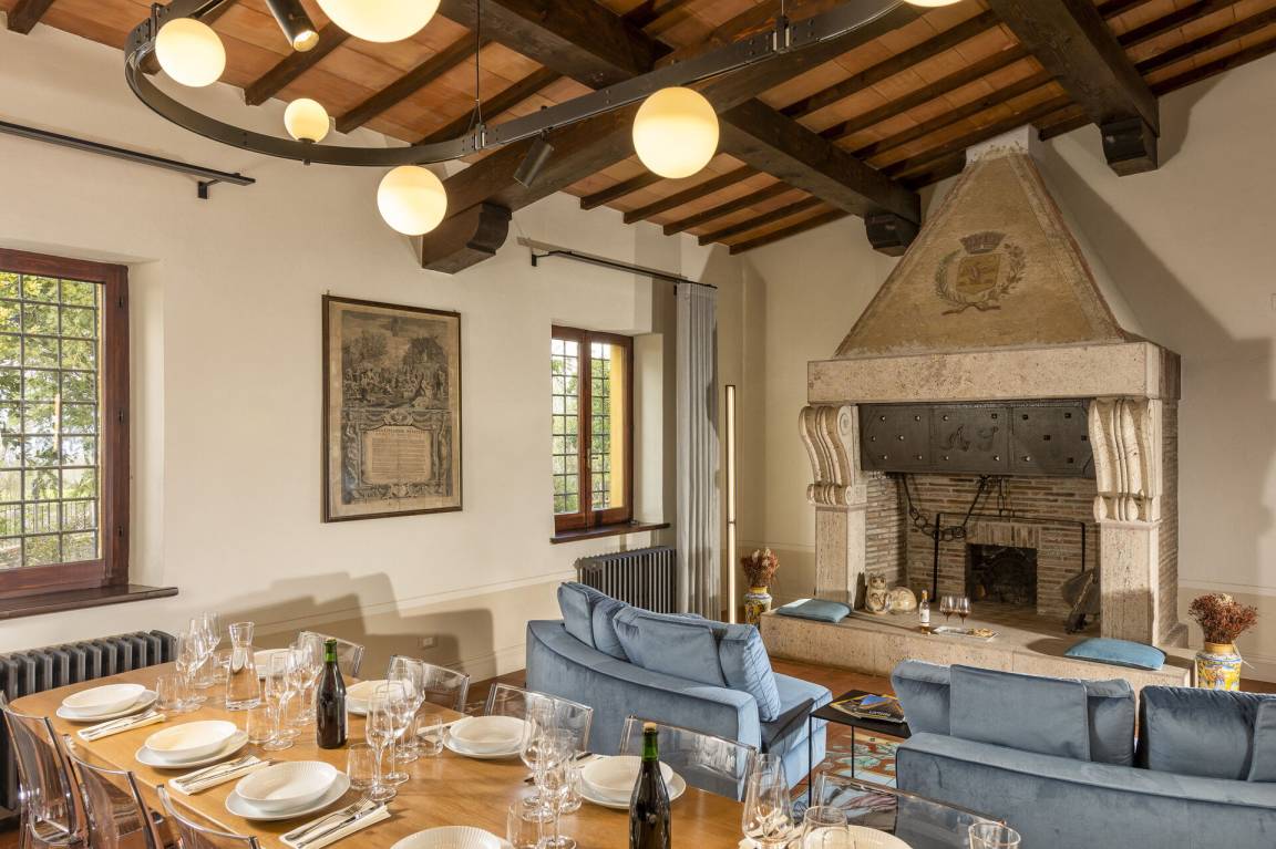 Wohnzimmer 2: zwei Sofas, Kamin, Esstisch (Personen: 16), WiFi Internet, Ausgang auf den Patio.