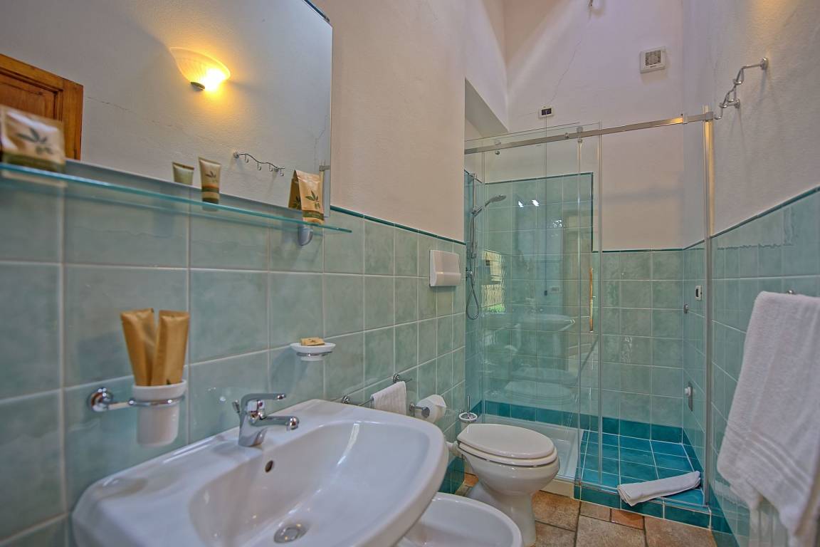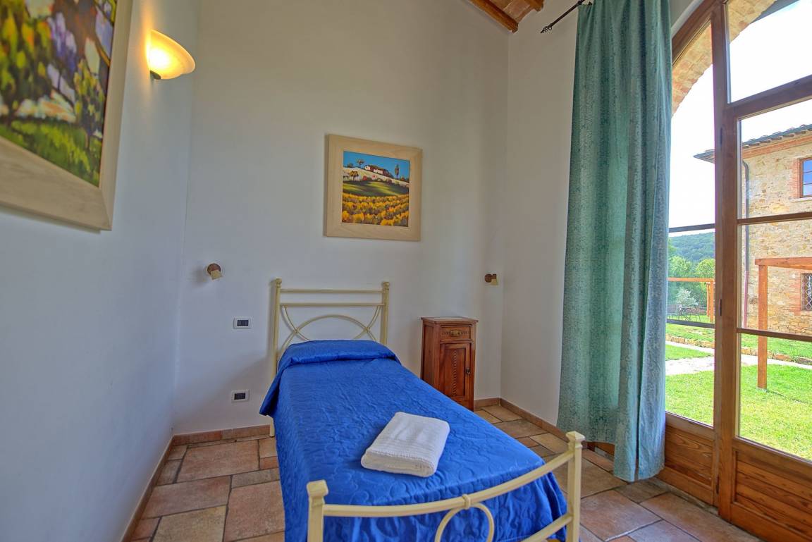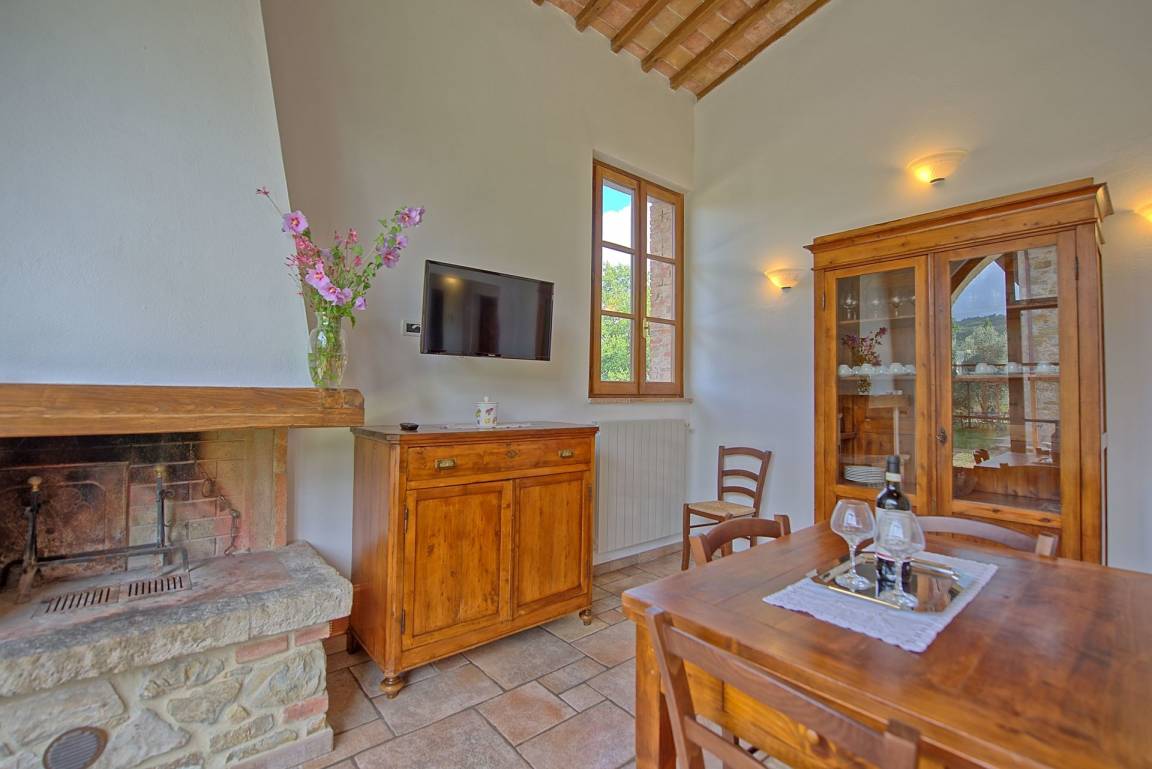 Erdgeschoss: Eingang zum Wohnzimmer (TV) mit Kamin, Essbereich und Küchenecke (Gefrierschrank, Mikrowelle, Geschirrspüler), Schlafzimmer mit Einzelbett und eigenem Bad mit Dusche, Schlafzimmer mit Doppelbett, Schlafzimmer mit Einzelbett und Zugang nach draußen Badezimmer mit Dusche.