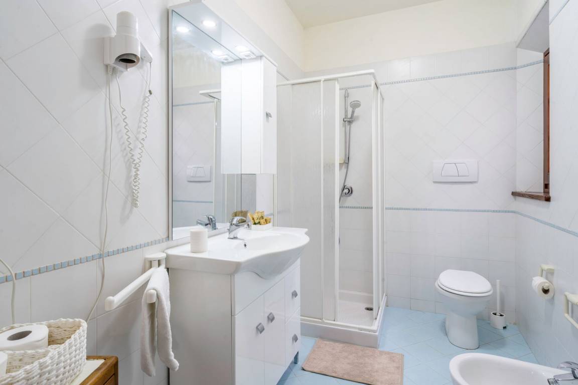 Badezimmer: Waschbecken, WC, Bidet, Dusche, Fön, WiFi Internet.
