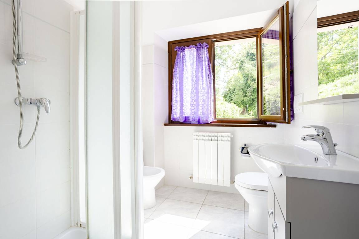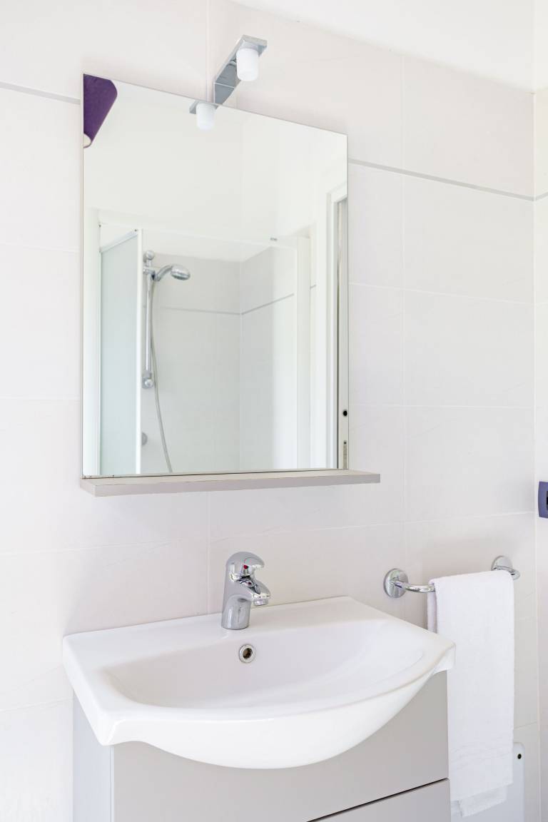 Badezimmer: Waschbecken, WC, Bidet, Dusche, WiFi Internet.