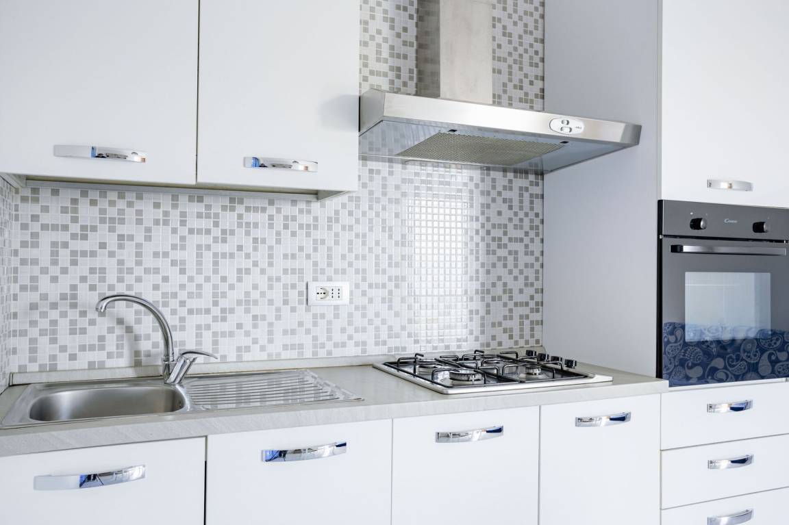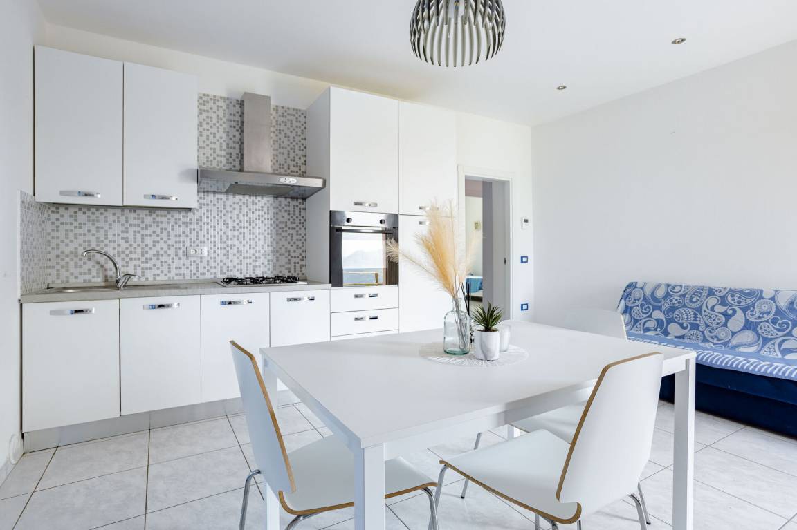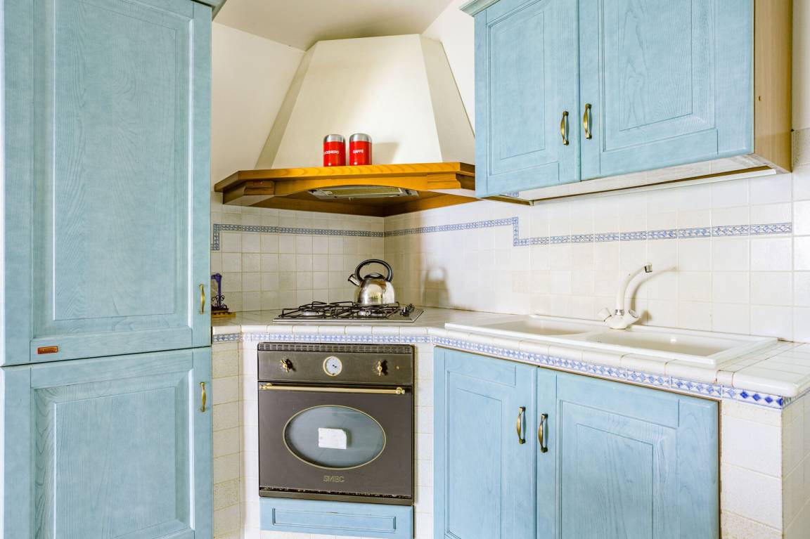 Wohnküche: gut ausgestattete Küche, Esstisch, Kühlschrank, Tiefkühler, Herd, Ofen, Italienische Kaffeemaschine, Sofa, WiFi Internet, Satelliten-TV, Ausgang auf die Terrasse.